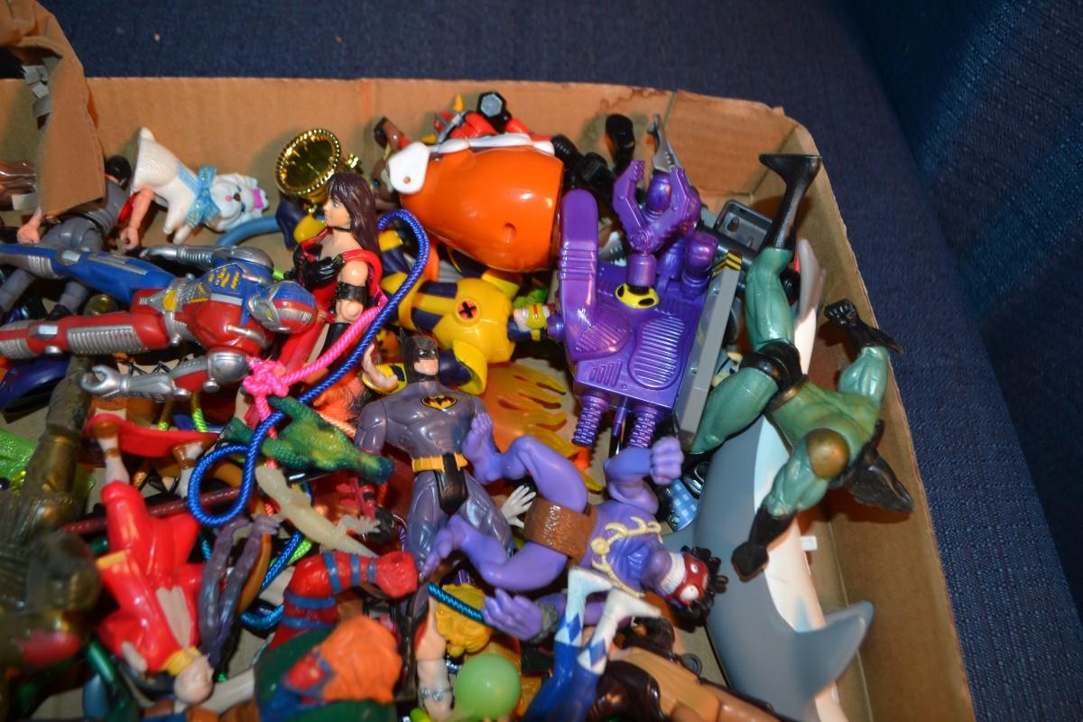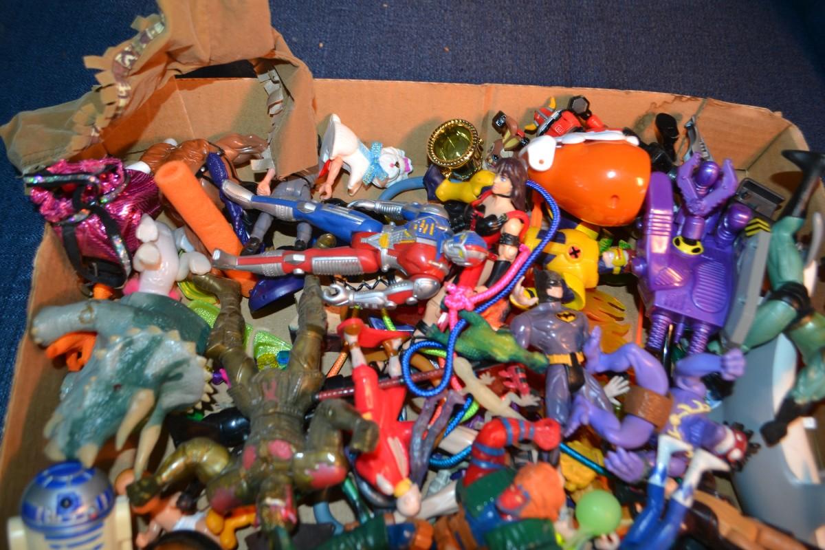 LOT 199 box of plastic toys in action figures