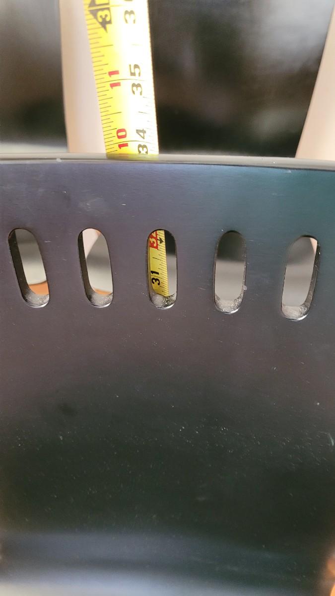 This chairs feature cut outs at the tops of each chair. They have the thin pin legs.