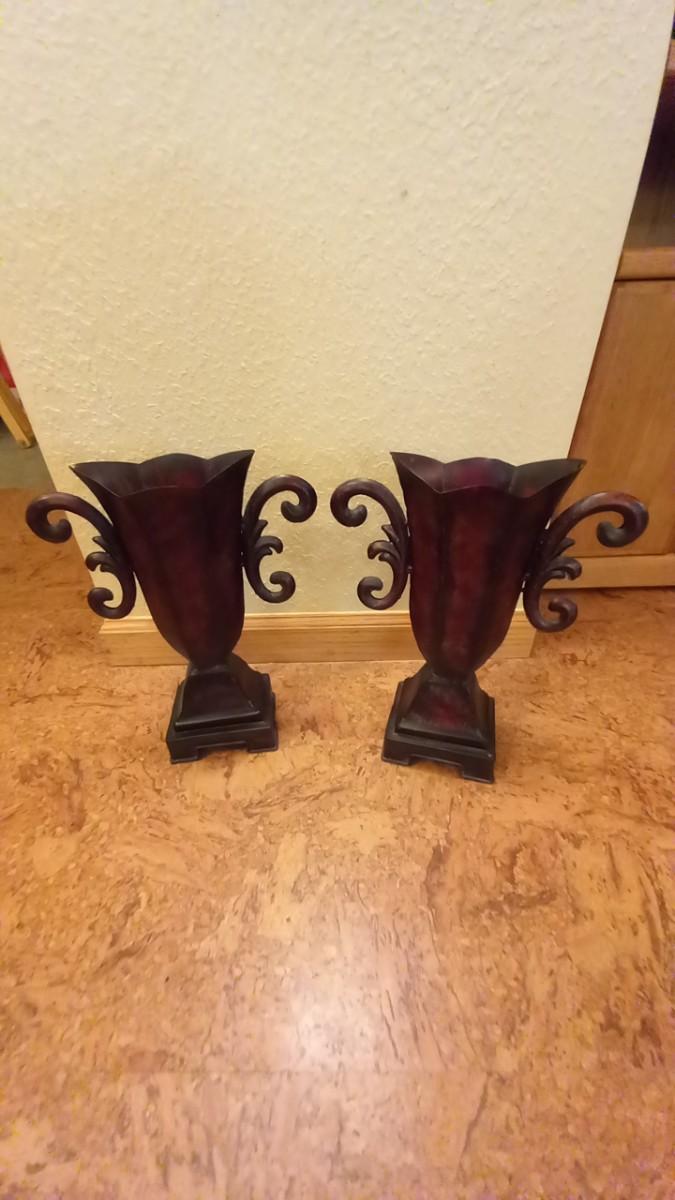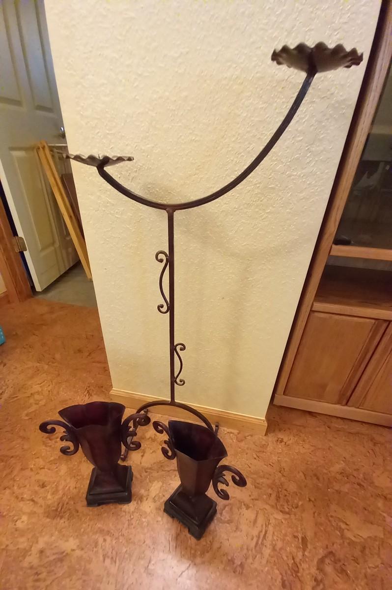 IRON CANDLE MEASURES 40X21" AND 2 METAL VASES