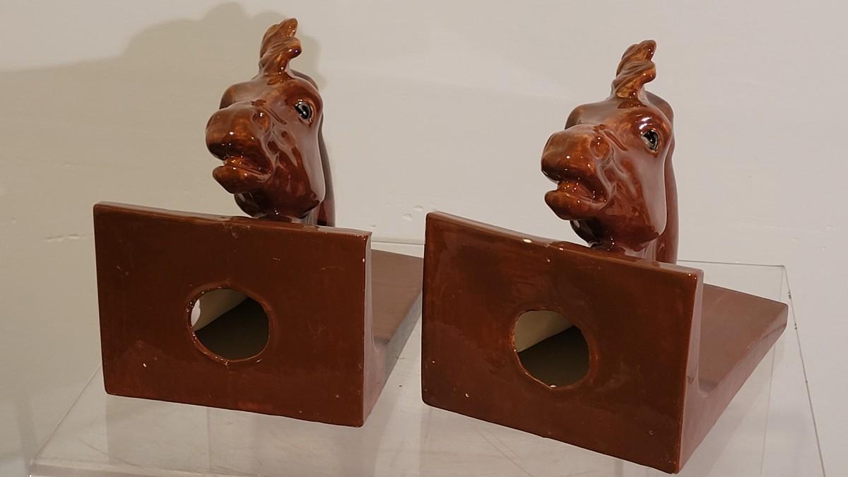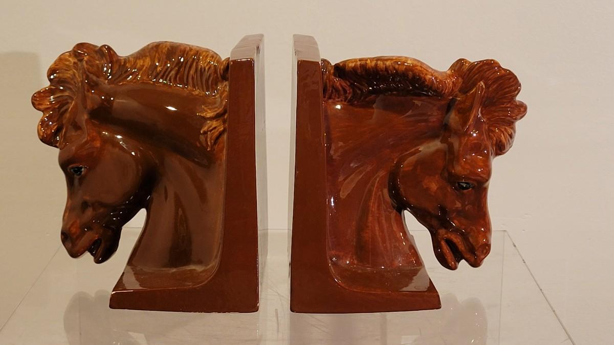 Lot 199: Vintage (3) Ceramic Horse Head Bookends