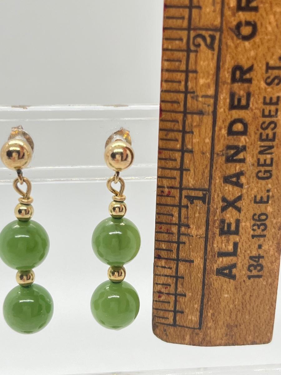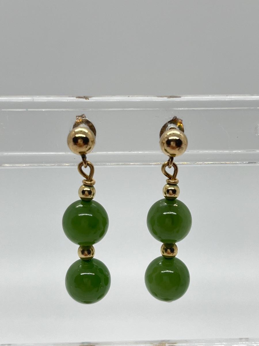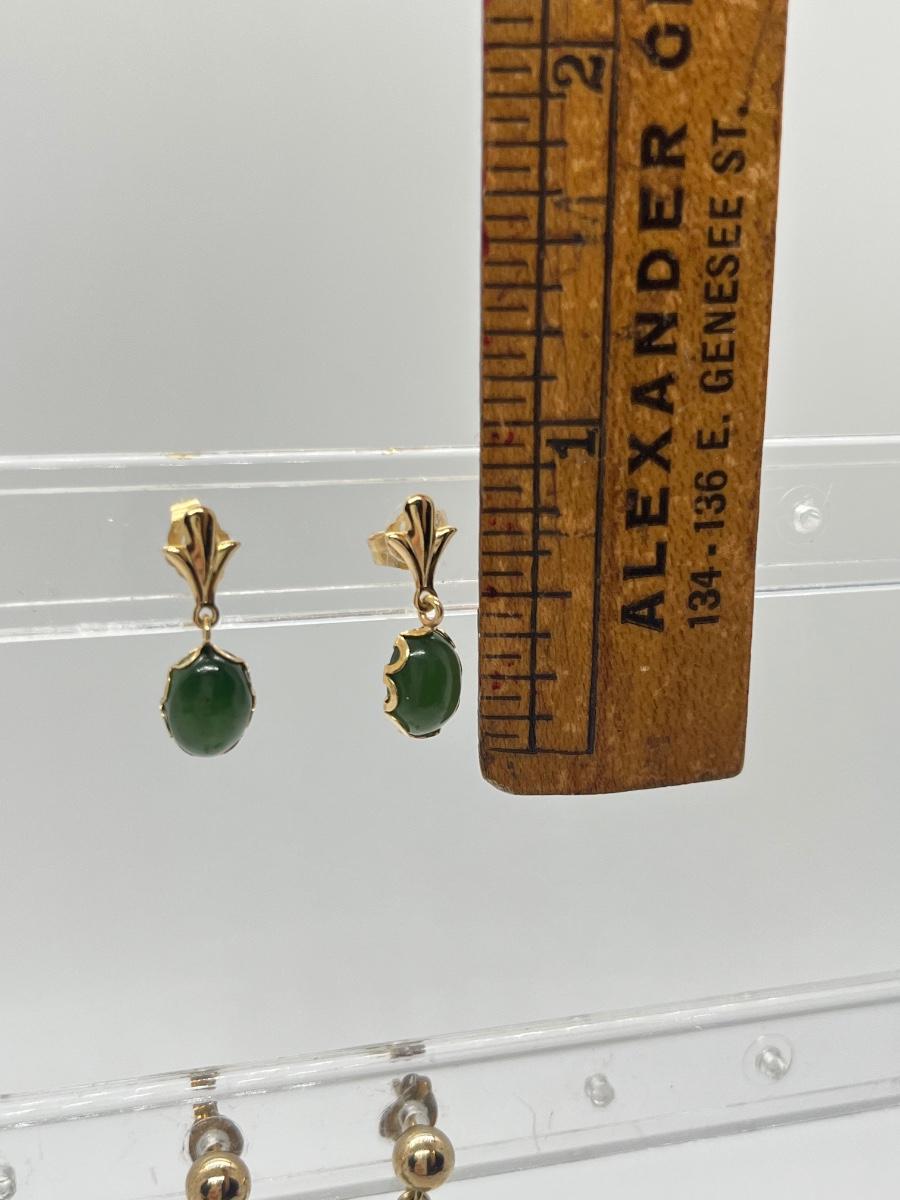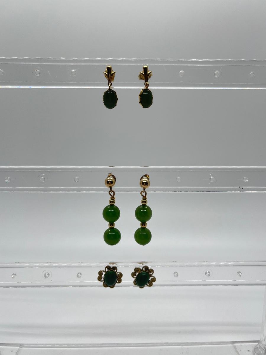 LOT 199: Three Pairs 14K Gold & Jade Earrings