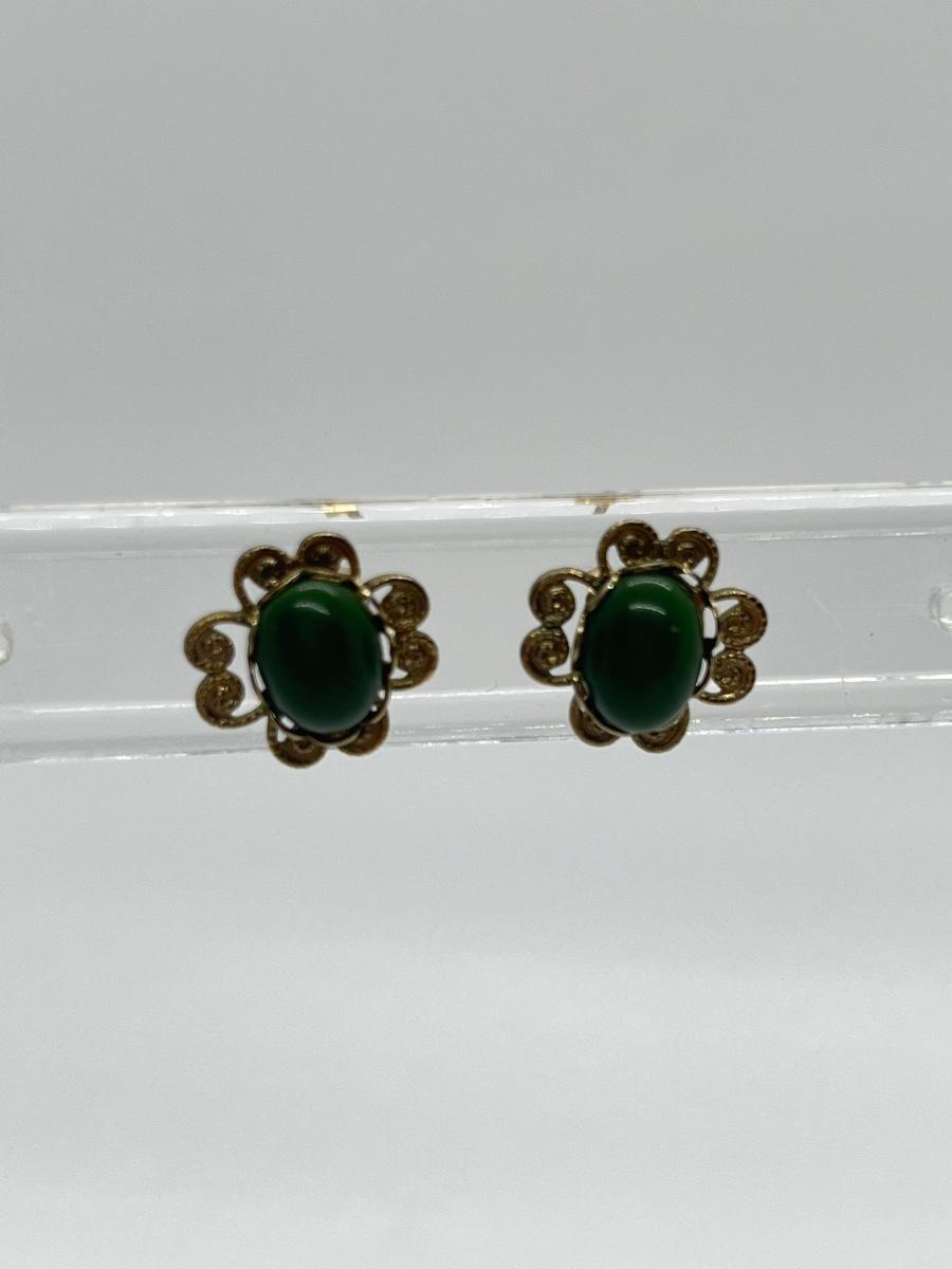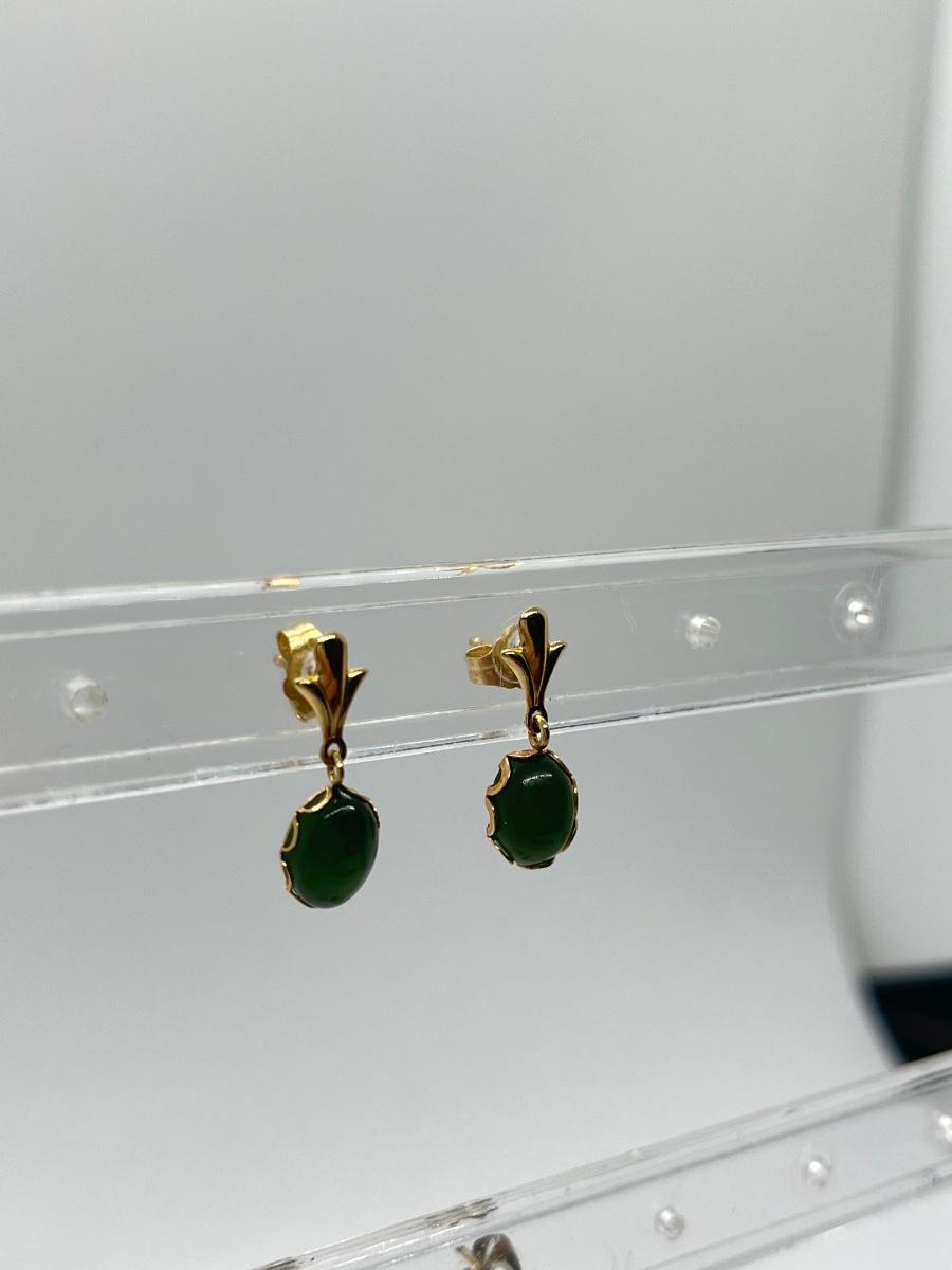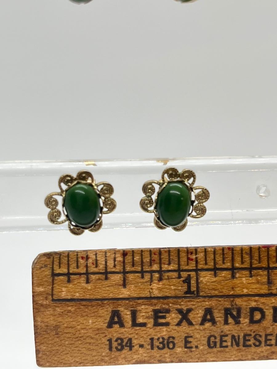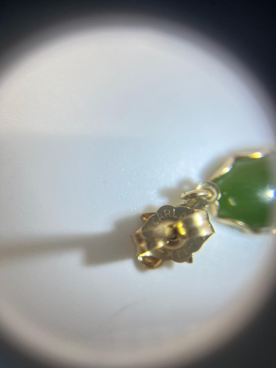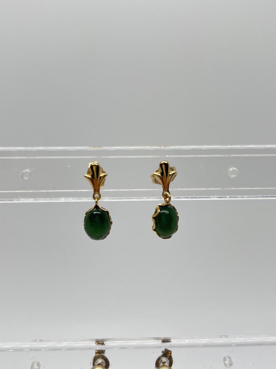 LOT 199: Three Pairs 14K Gold & Jade Earrings