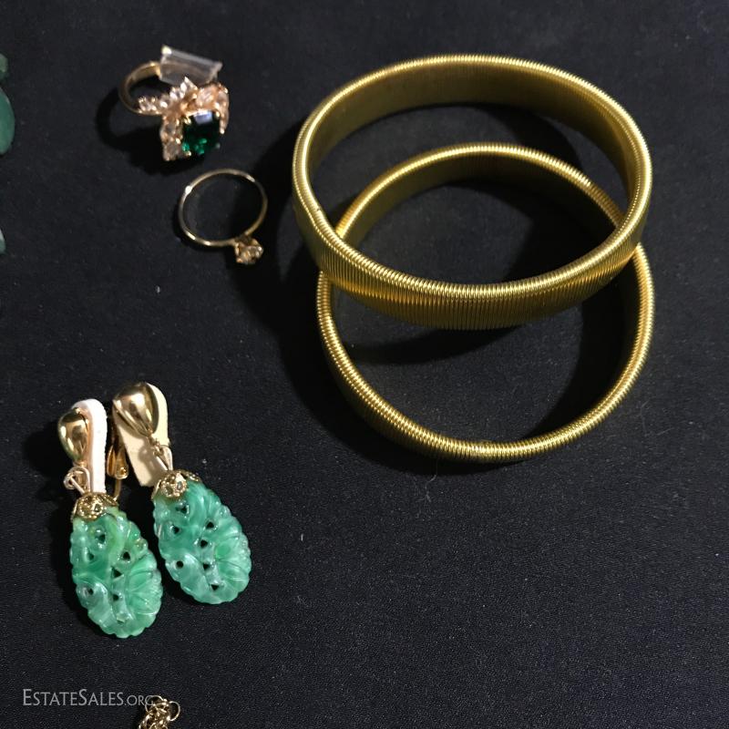 Lot 199 - Assorted Gold And Green Stone Jewelry