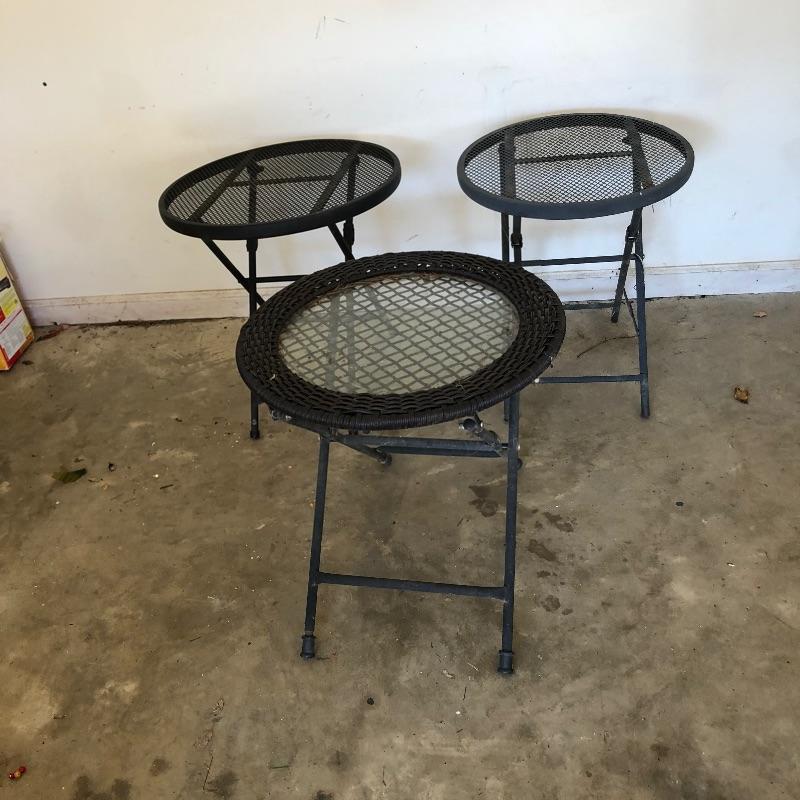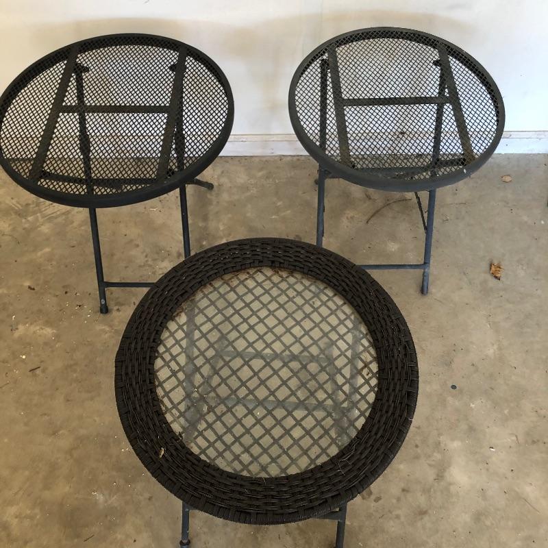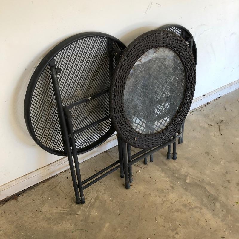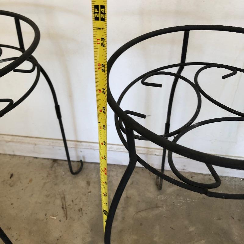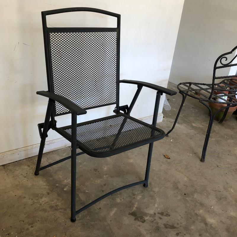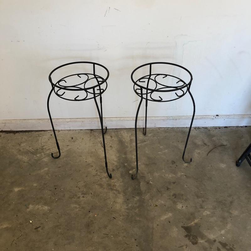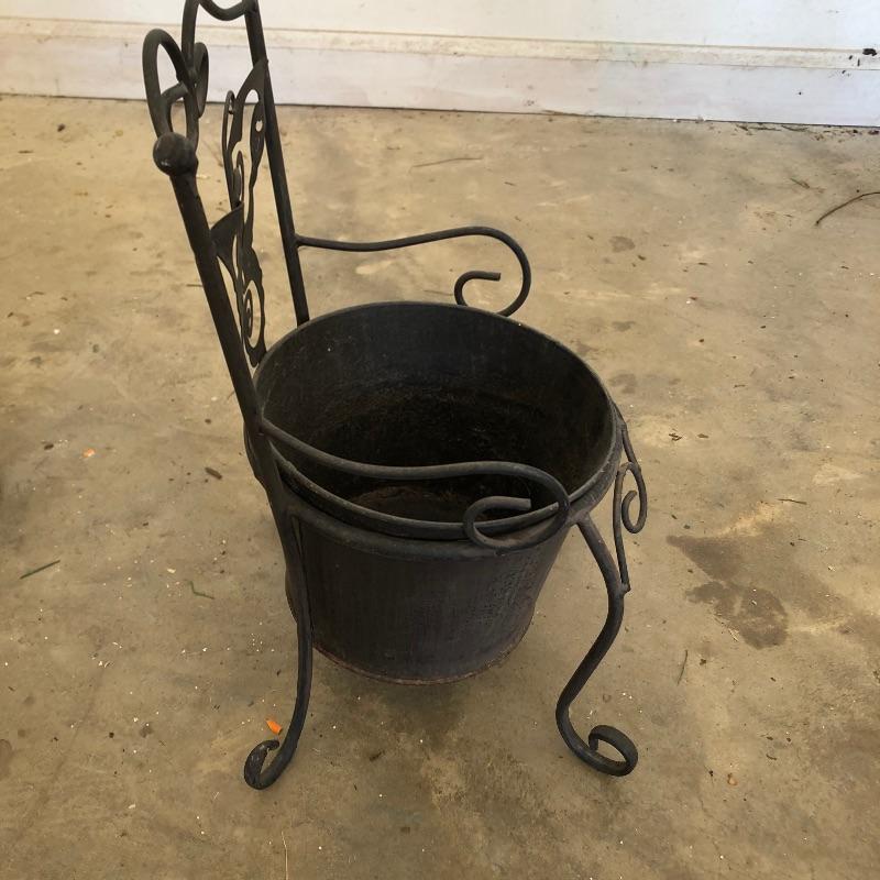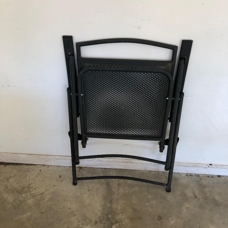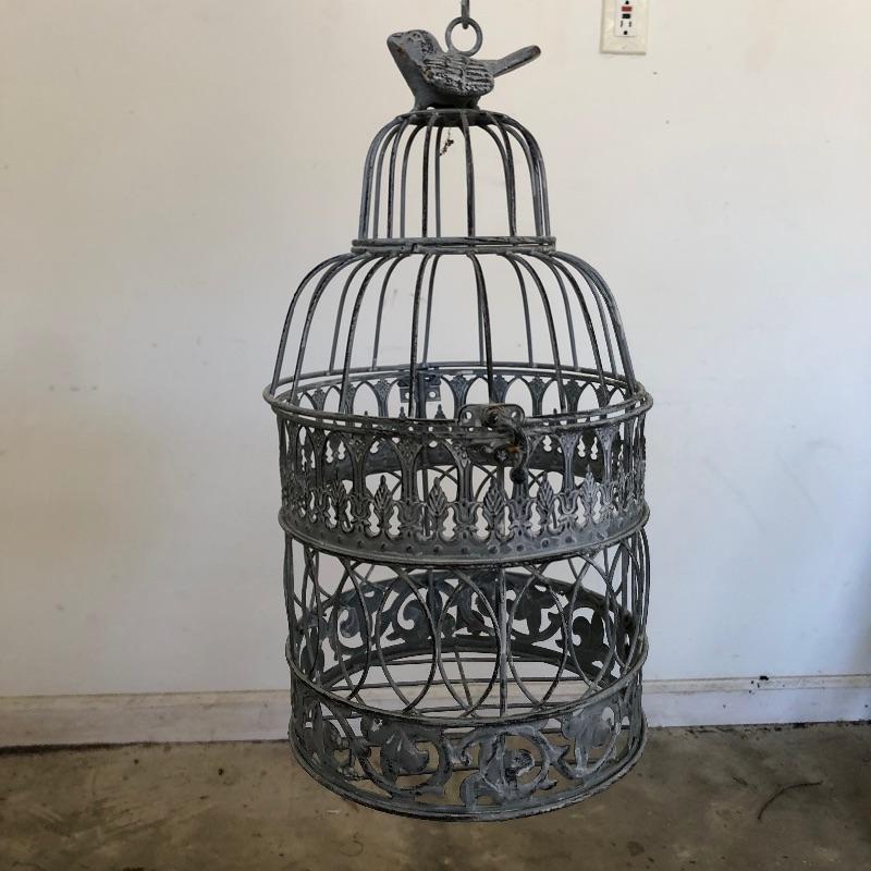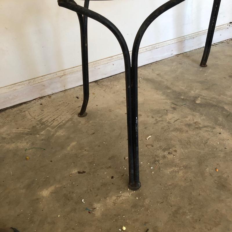 A bit of a clean and possibly a paint touch up and this solid metal loveseat will look lovely by the front door or on your back porch and we have thrown in a can of black spray paint just for the job! Also included are 3 folding black metal small patio tables, two plant stand holders, a folding chair, cute metal butterfly planter and three small metal bird cage style hanging decor. These cages tops open and they have hooks to hang.