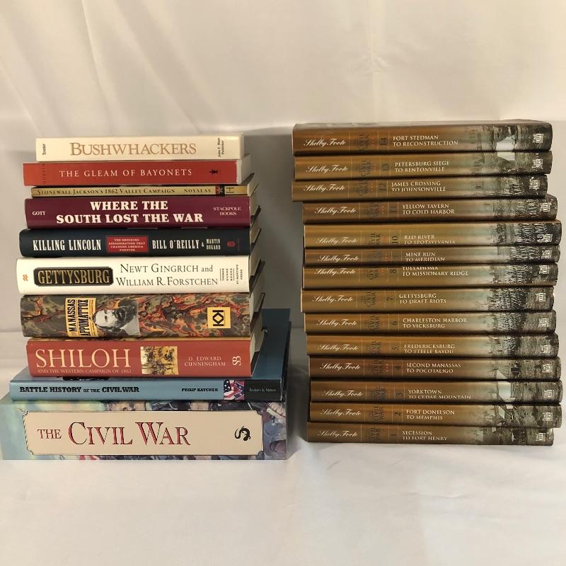 History enthusiasts will live this lot. It includes an assortment of Books about the Civil War. Including a nice set by Shelby Foote. No shipping.