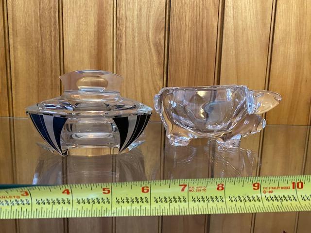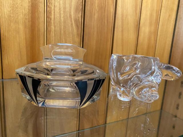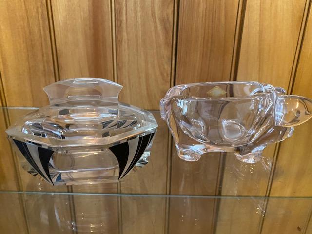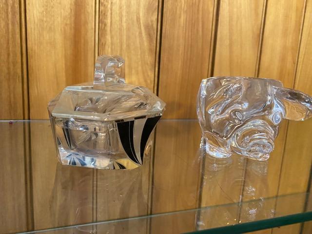 Lot 199 Lead crystal pig and deco glass dish with lid