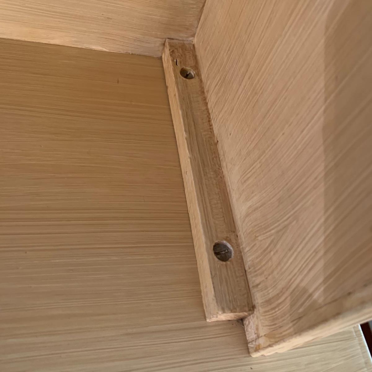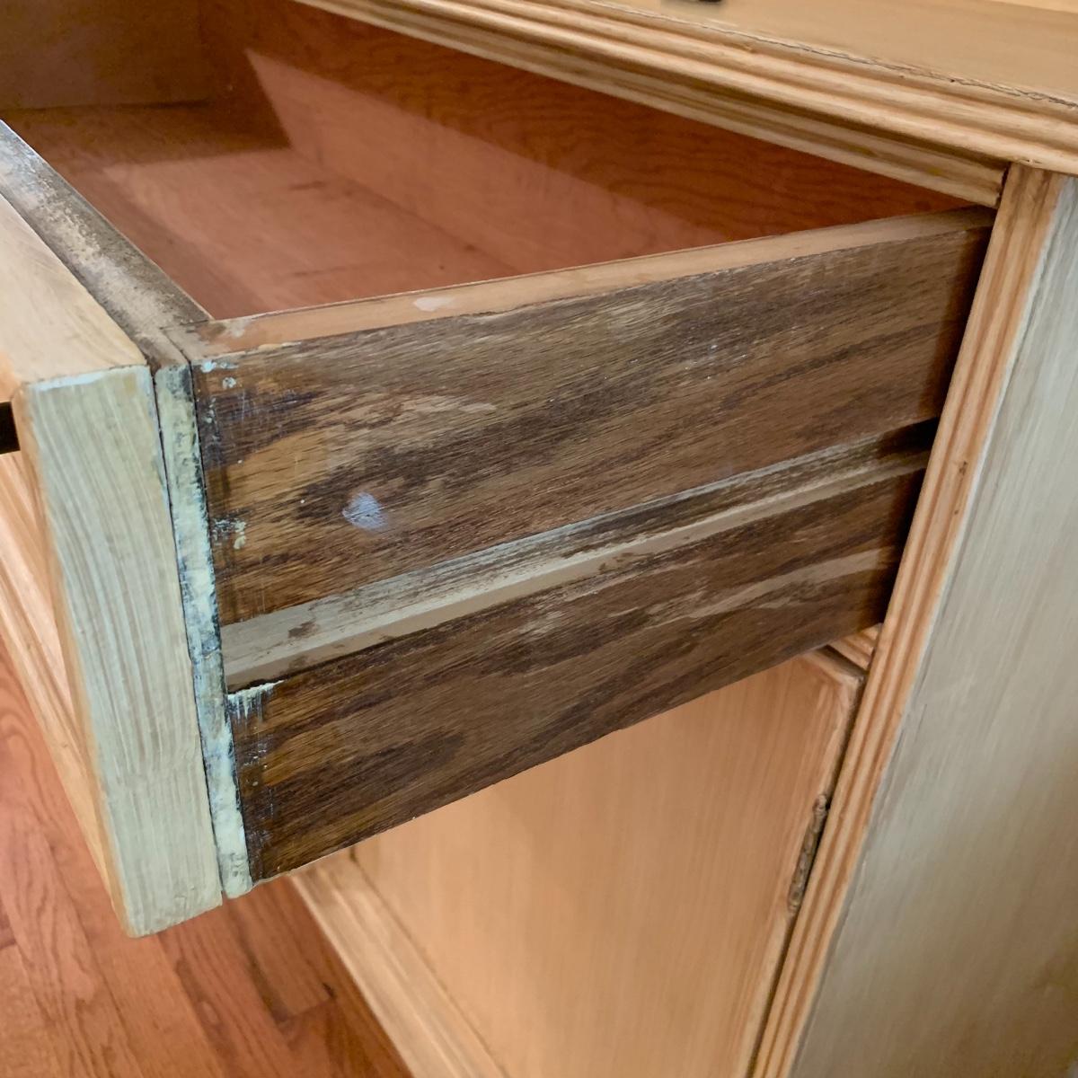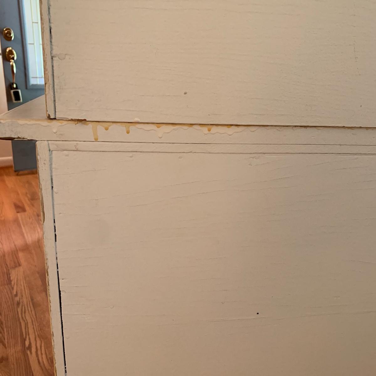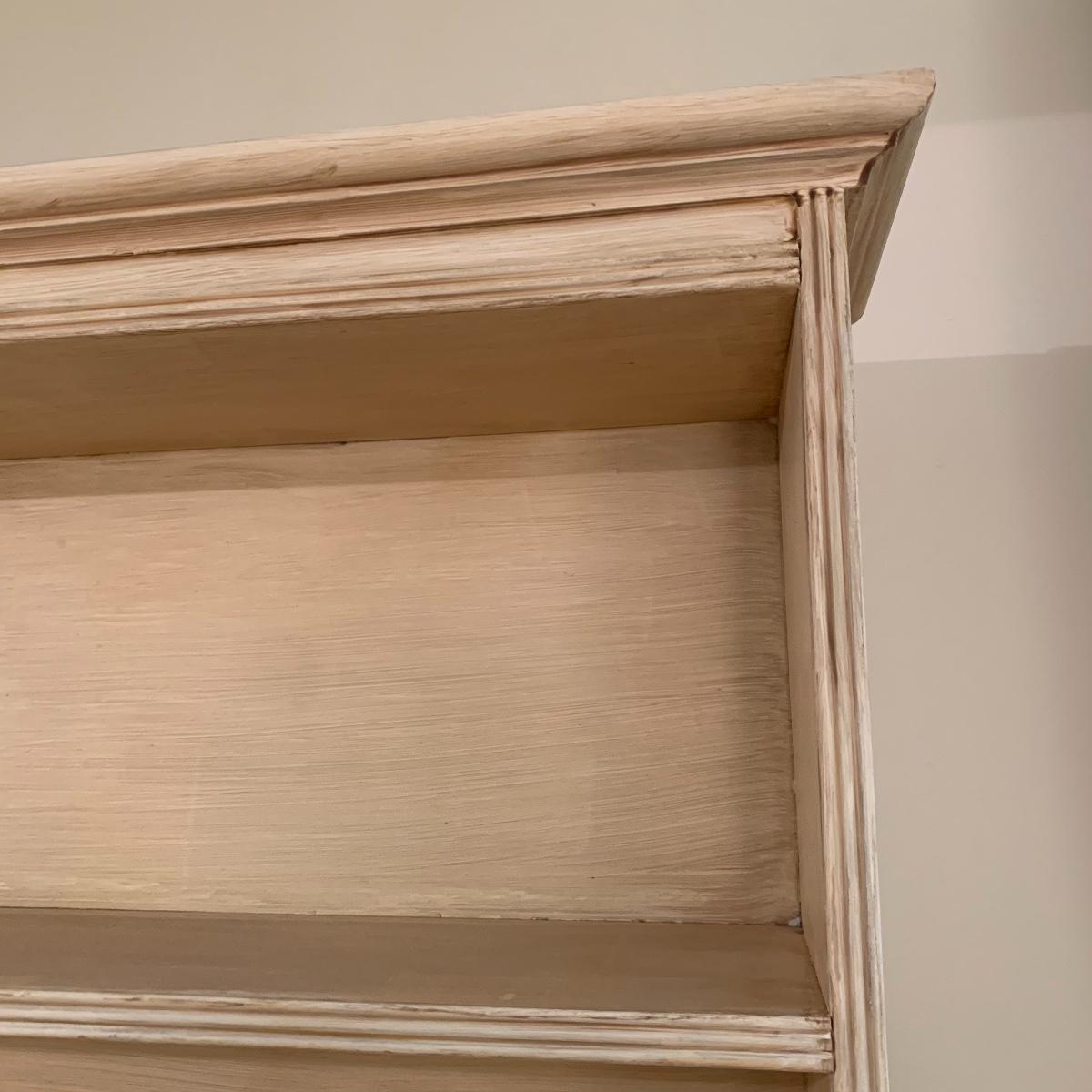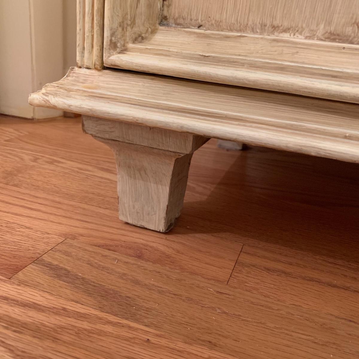 This lot includes one cream colored painted sideboard. The sideboard has two cabinets with shelving inside and a large drawer. It has a top with three shelves that was once detachable but was seemingly glued on, it no longer can be removed. It comes with one key for the cabinets that does not work and is for decorative purposes only. The drawer needs to be wiggled to open up. There are some glue drips on the back of the piece connecting the top and bottom (see photos). The piece measures 17in x 43in x 73in. Local pick up only.