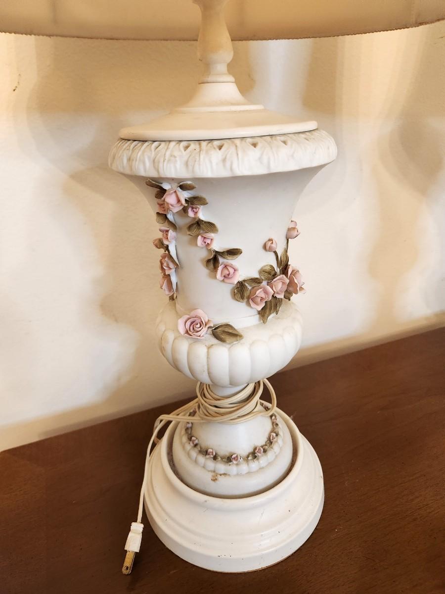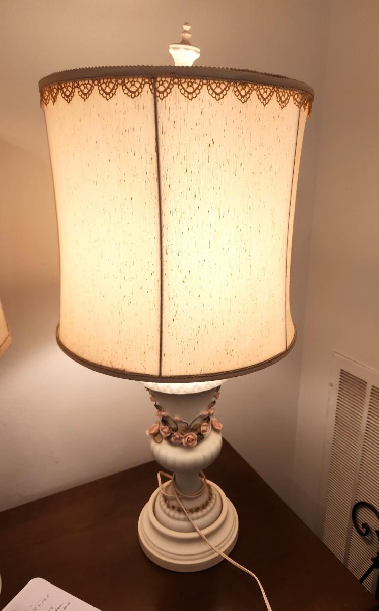 Lot #199 Pair of Vintage Porcelain Base Lamp - Rose motif
