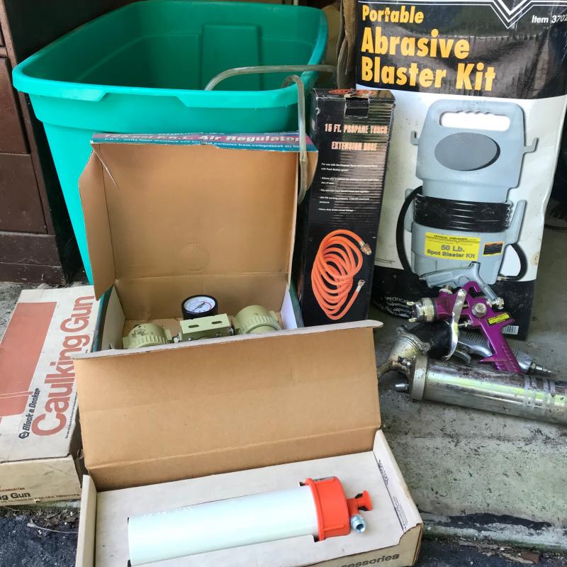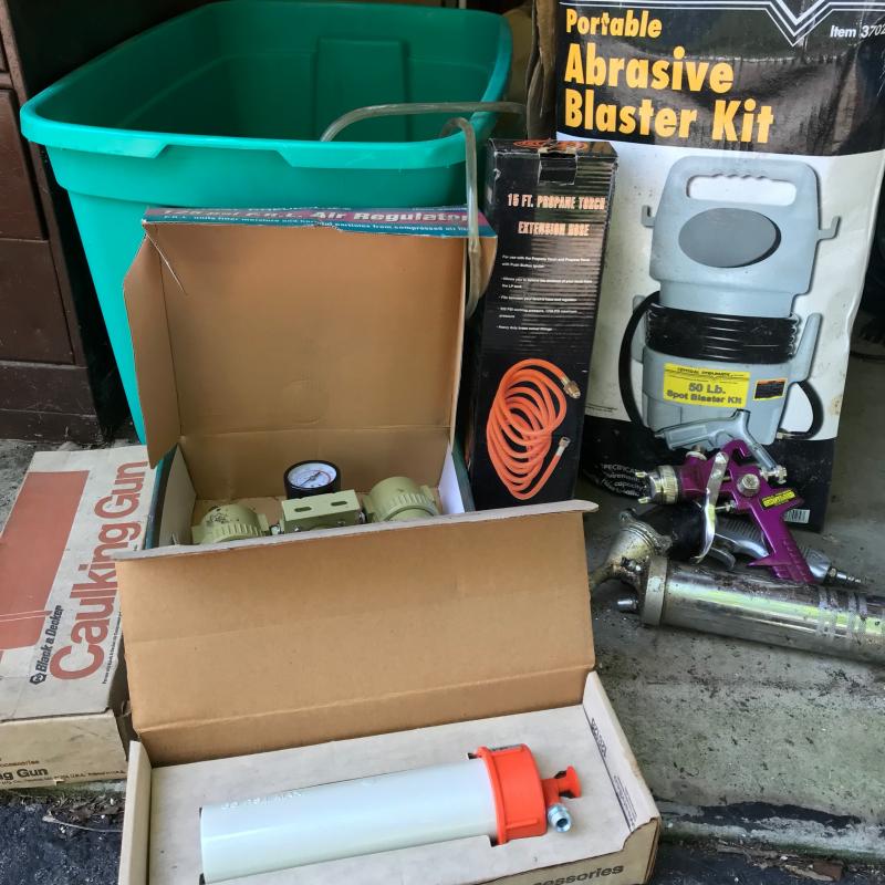 Portable abrasive blaster kit, and various pneumatic tools. See pics. No shipping available. Local pickup only.