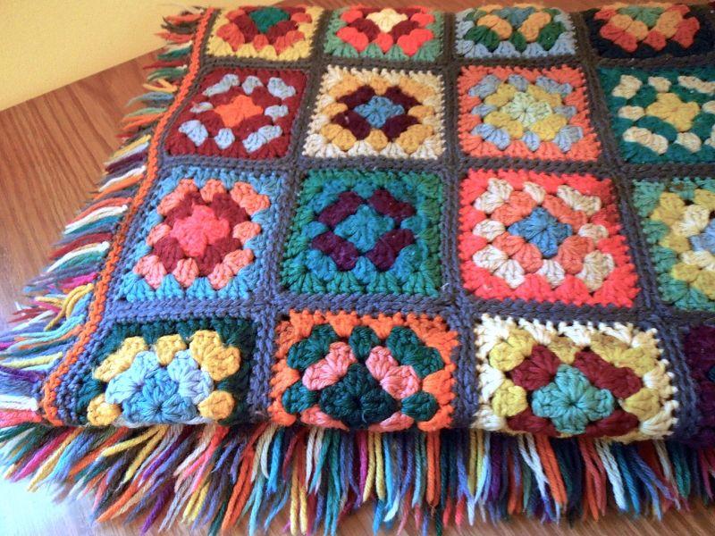 Lot 199: Three Vintage Handmade Wool Granny Square Afghans