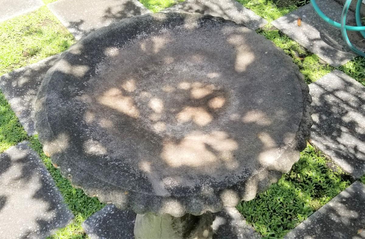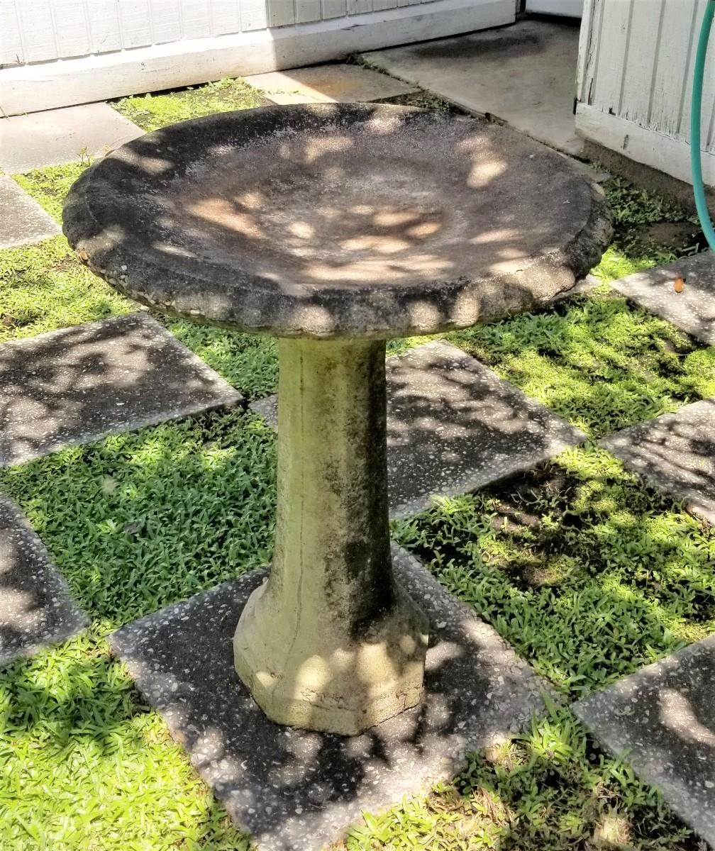 Vintage concrete birdbath - breaks down into two pieces. HEAVY. 27" tall, 22" across. Vintage condition.
