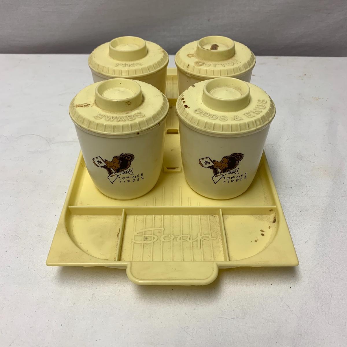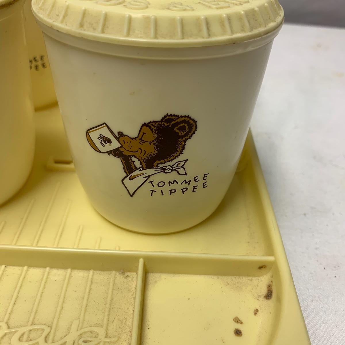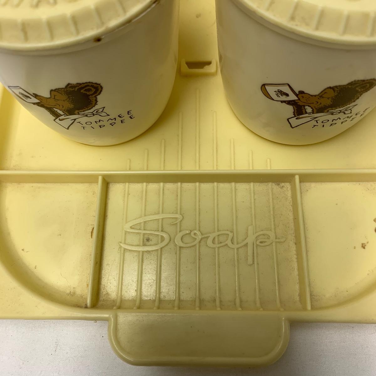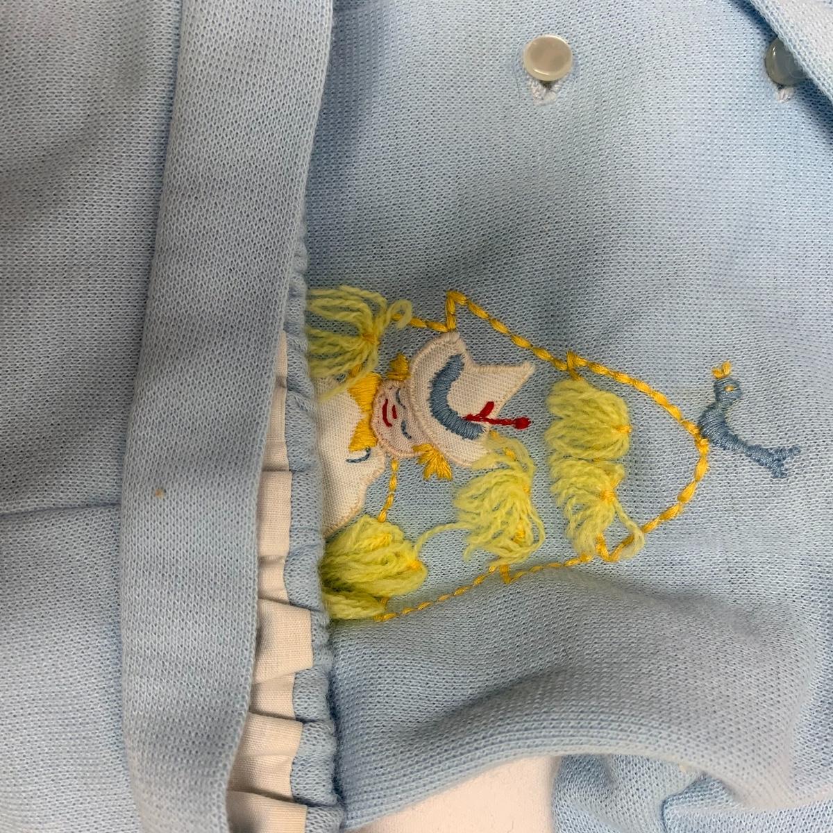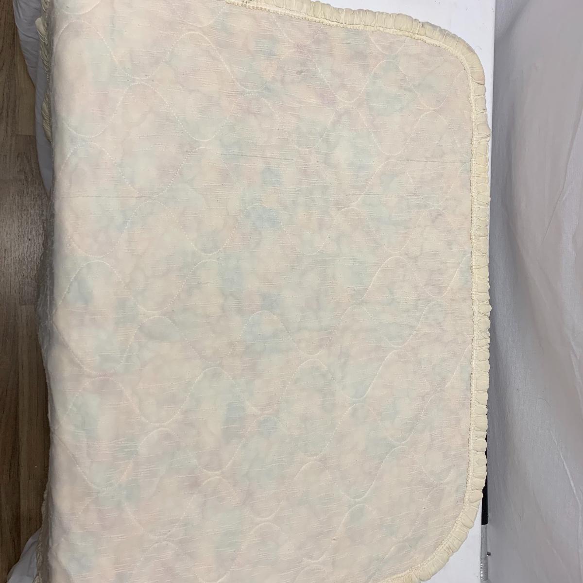 Step back in time with this lot of vintage baby items. Included are an unopened blanket that measures 36” X 50”. Next is a soft pillow and blankets with a cute elephant and duck design. Also included is a cup set that has its own little tray. See pics for how adorable this is. Next is a baby food warming tray that comes in it’s original box and has a manual. There is also a 2’ X 3’ handmade quilt. This quilt has a few stains, so see pics for details. Also included is a latch and hook picture featuring different animals in a boat. This picture measures 51” X 38”. There is also a diaper pale with this lot. Last is a little silver plated cup.