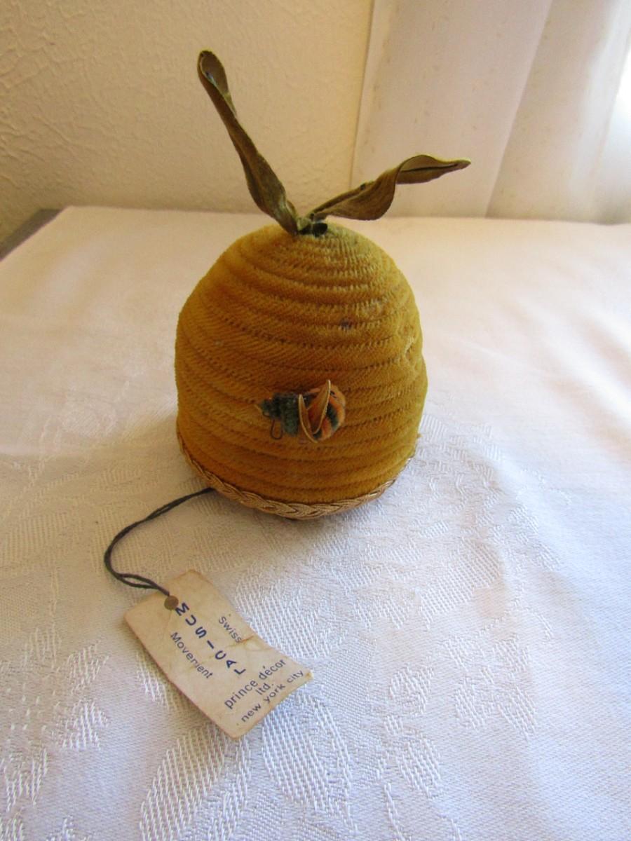 MUSICAL SWISS MOVEMENT FELT COVERED BEEHIVE PLAYS "LAURA'S THEME"