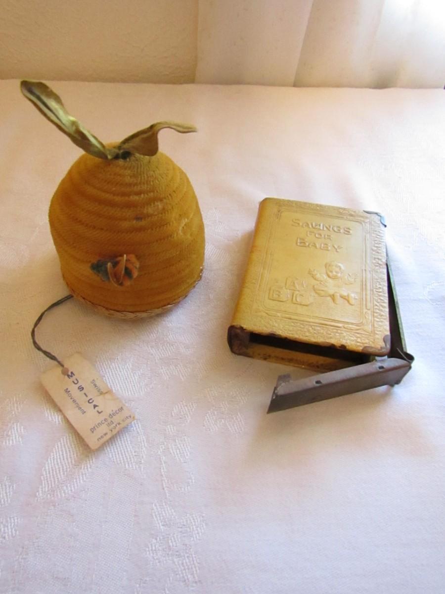 LOT 199 VINTAGE BABY BANK AND A MUSICAL BEEHIVE