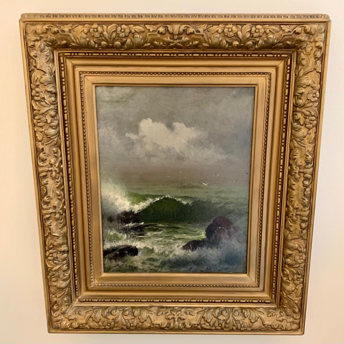 LOT 199 Z: Framed Signed Oil Painting on Canvas: Stormy Ocean Landscape