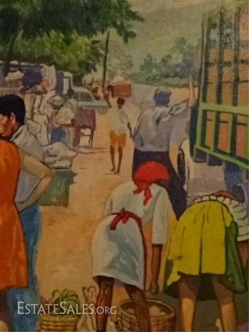 LOT 19B: LLOYD VAN PITTERSON HAITIAN PAINTING ON CANVAS, MARKET SCENE