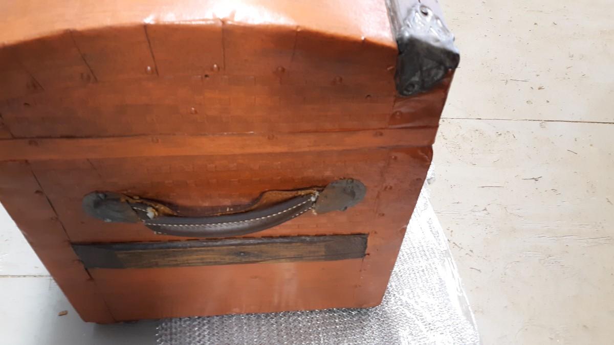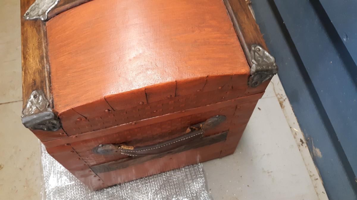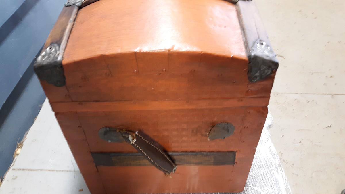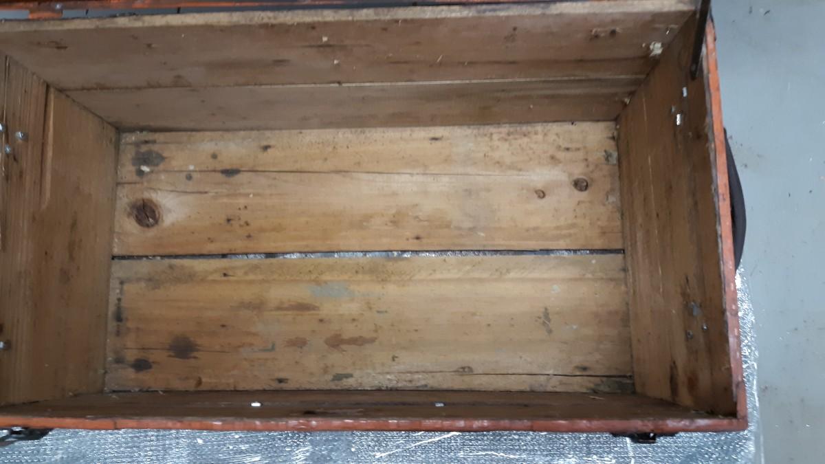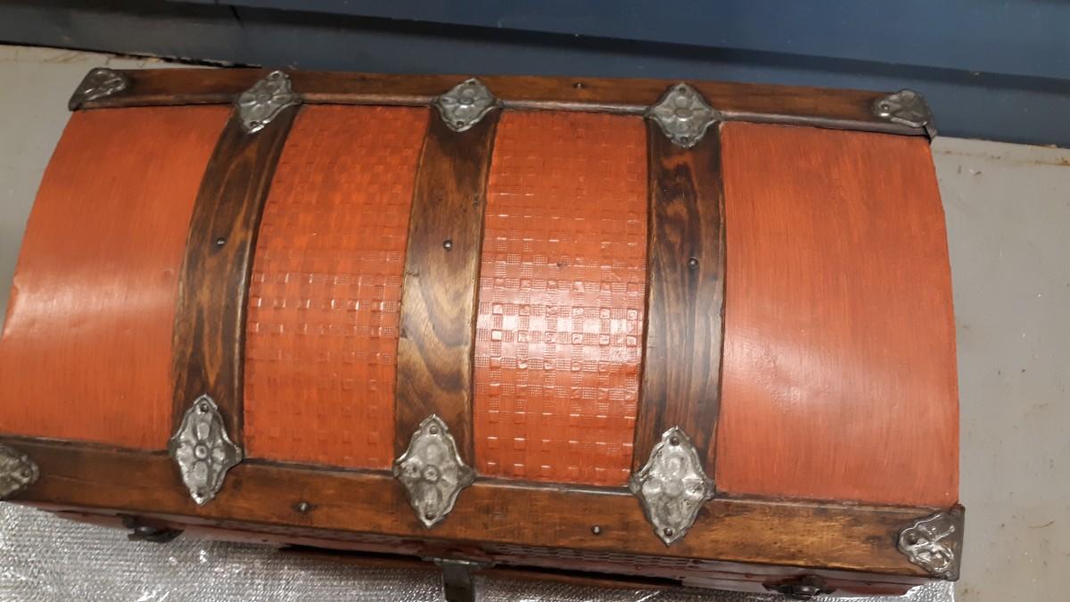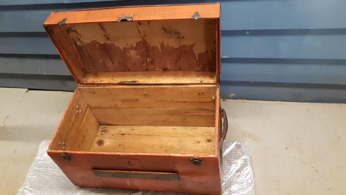 Lot 19-Vintage Wood and Metal Trunk -Nice Piece! Orangish in color