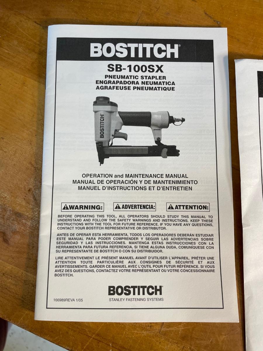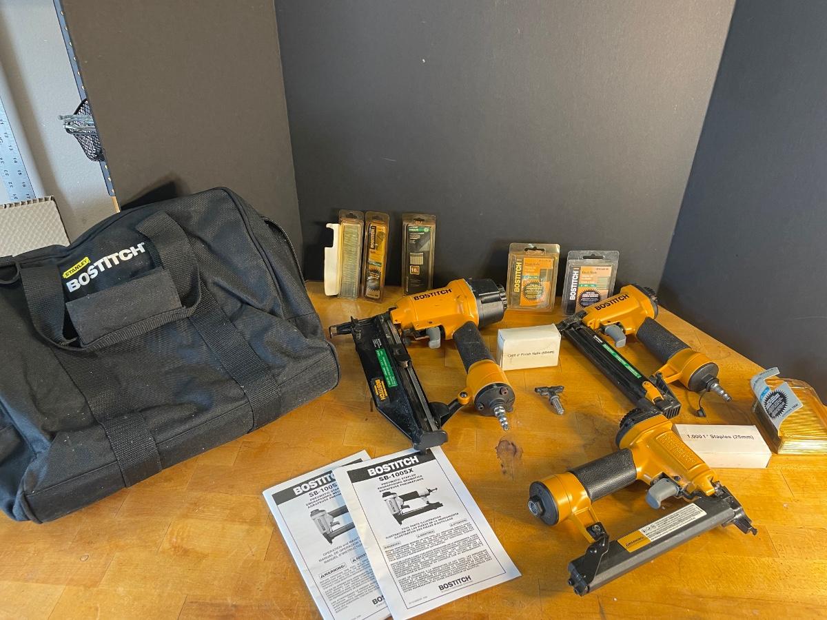 Three Staplers Bostitch model SB-100 SX includes carrying case and assorted nails