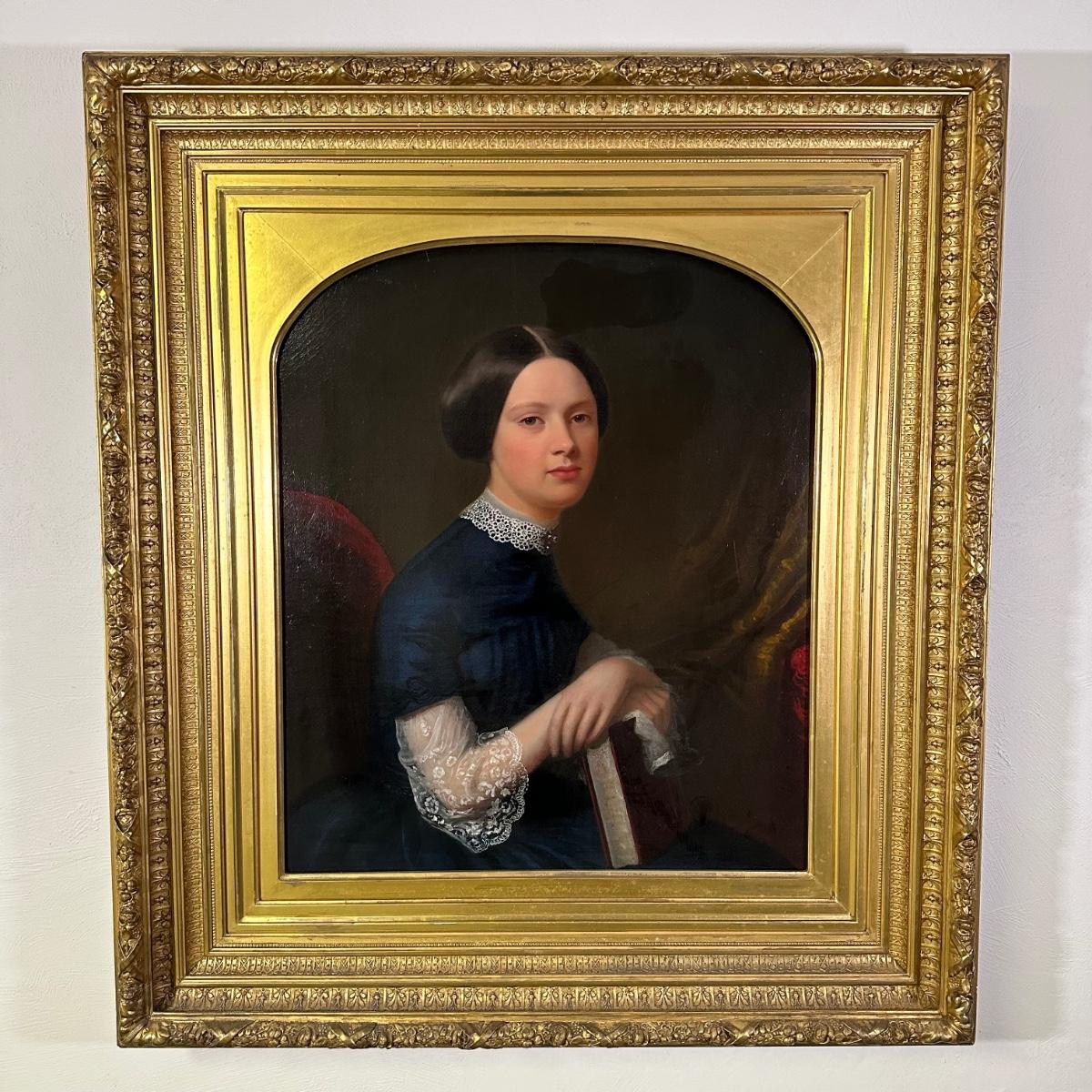 LOT 1B: Framed 19th century Original Oil Painting Portrait of a 16 year old Maria Conarroe