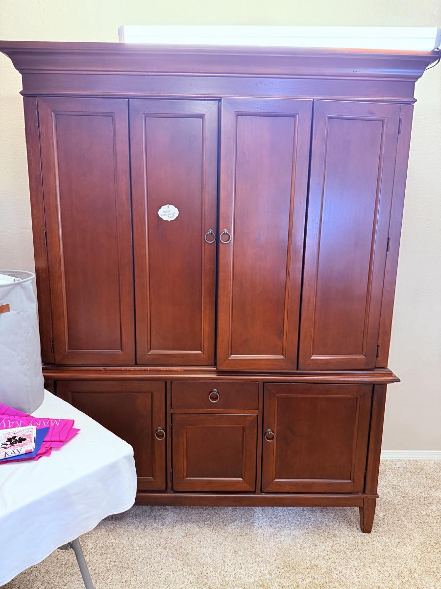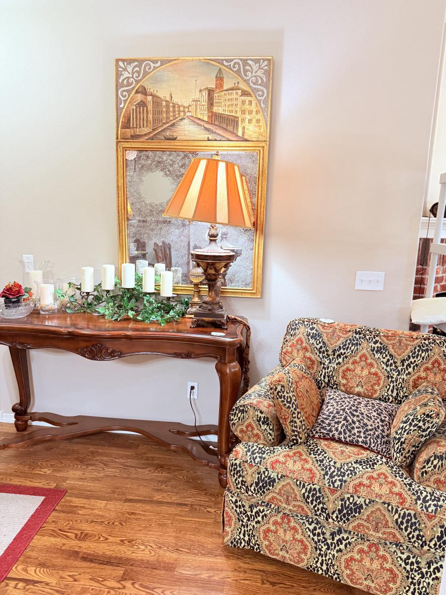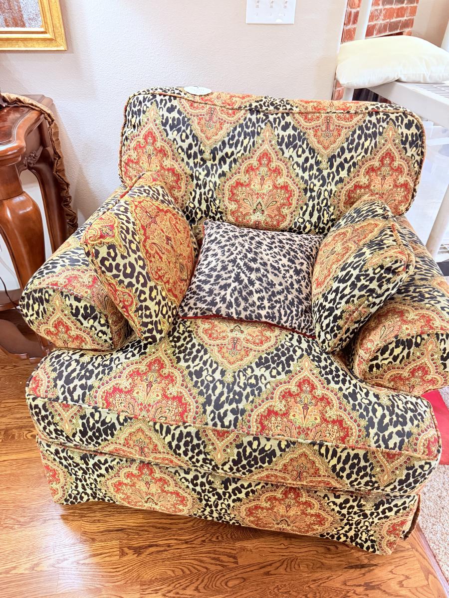 Lot 2: Italian Mirror, Beautiful Leopard Chair, Hooker Entertainment Center, Home Decor & More