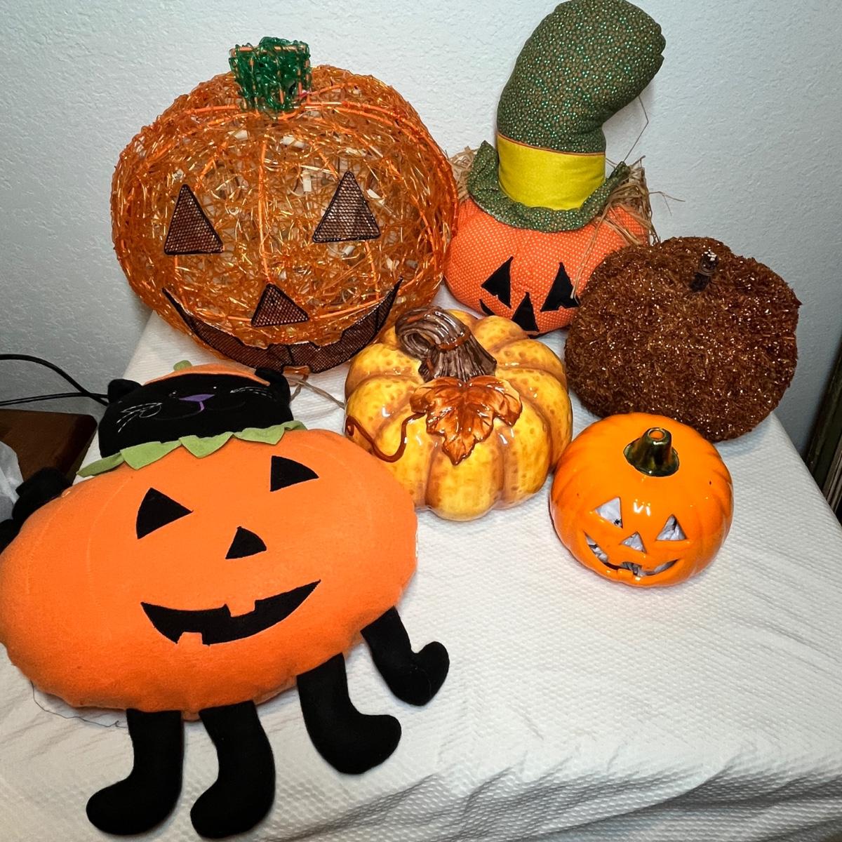 Plush, porcelain, & hard plastic. The top left one lights up.