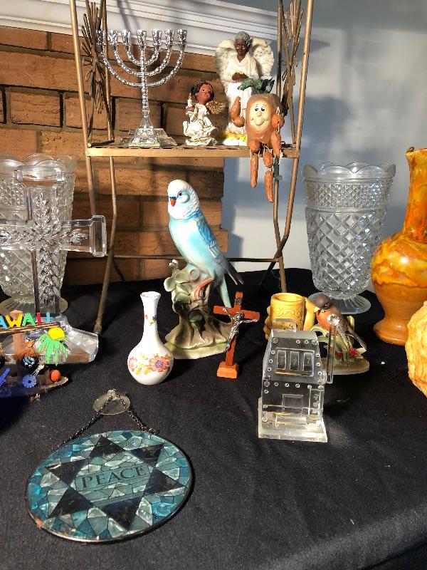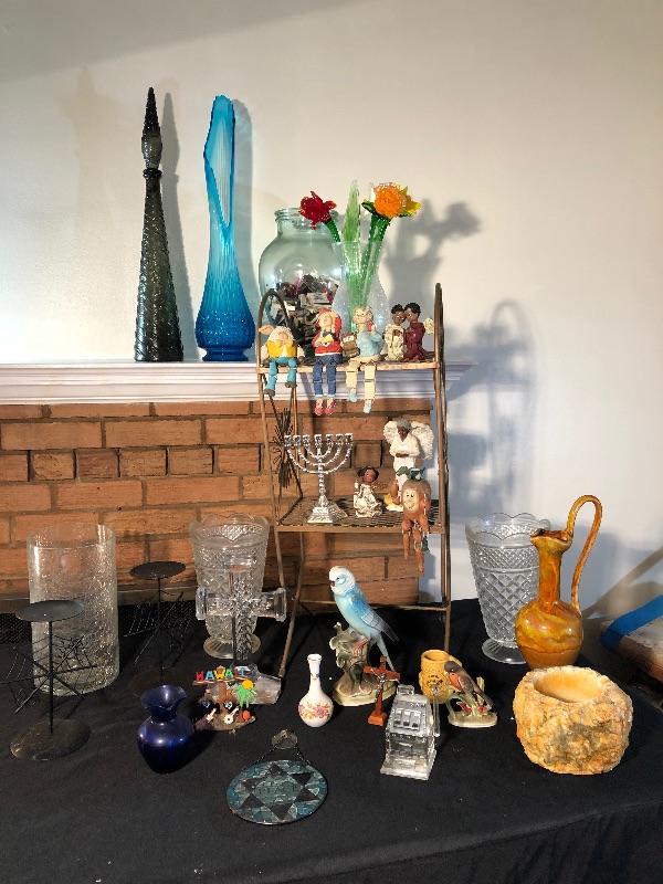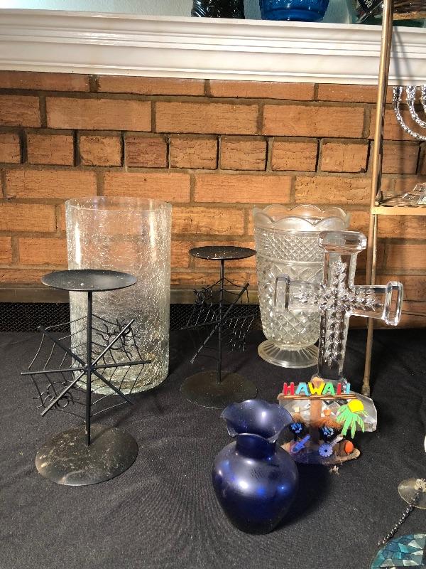 Lot 2 - Large Collection of Beautiful Glass Vases, China, Metal Stand, Pottery, Collectible Wood Figures, & China