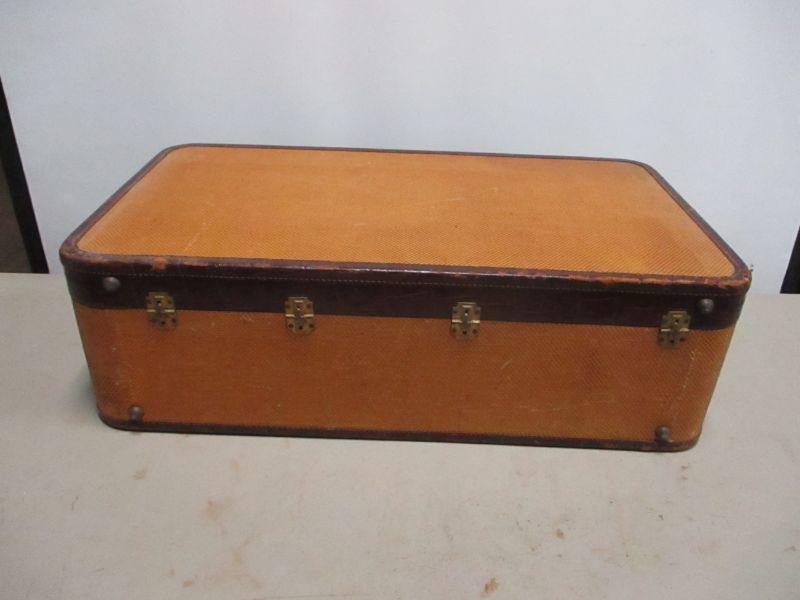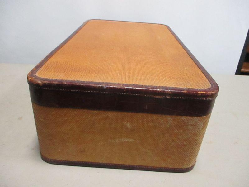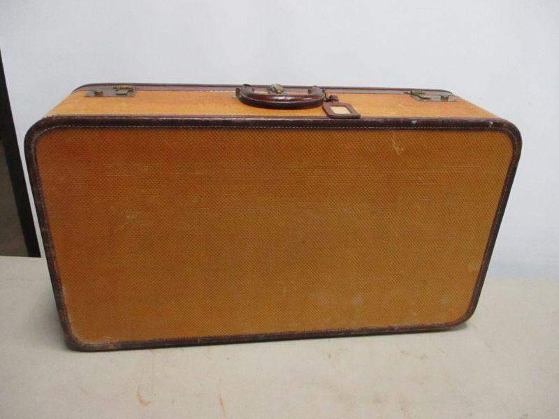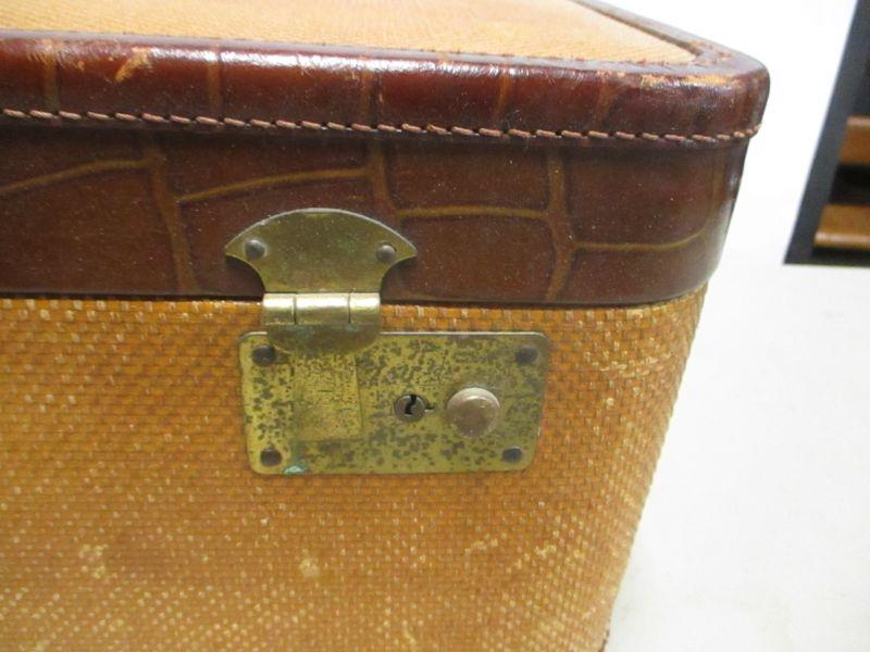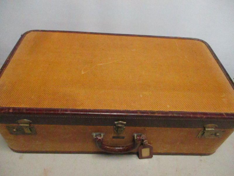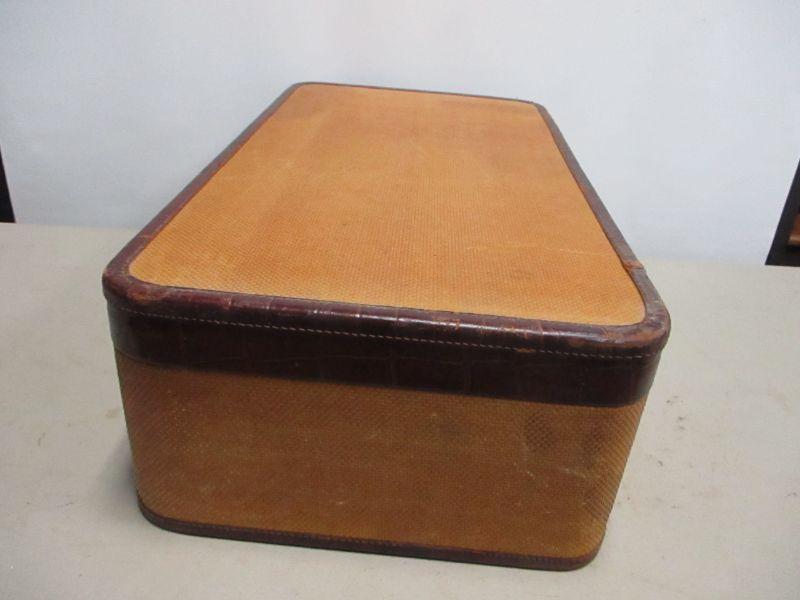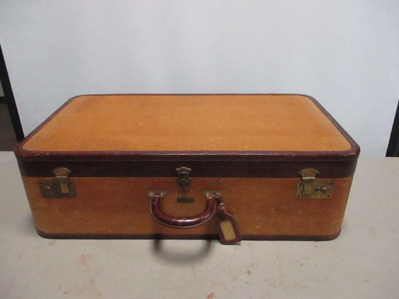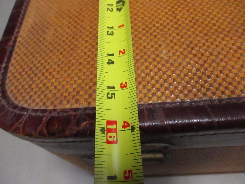 w/Leather Trim & Basket Weave. Approximately 29" x 16" - Please see pictures - suitcase does have wear - no Keys