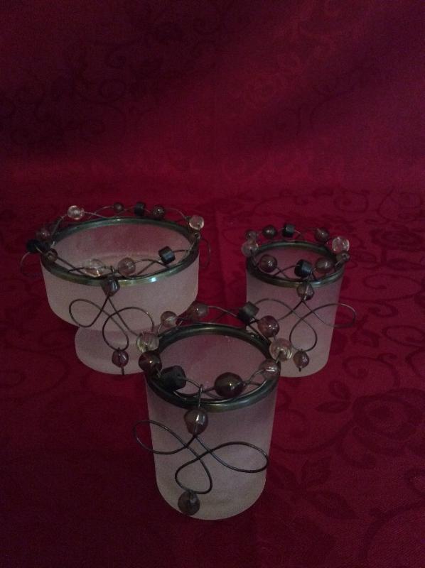 Small cute Party Lite votive holders, Larger candle holder takes a larger size candle as well as a votives. Fun, Fun, Fun!