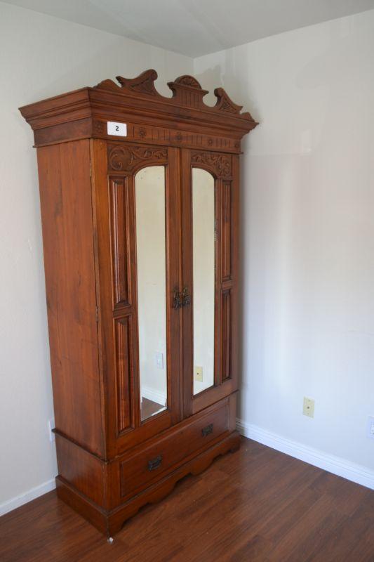 LOT 2 WOOD AND MIRROR CREDENZA 40" X 21" X 83"