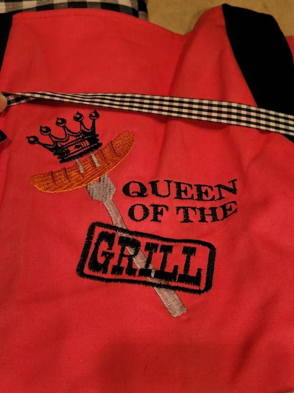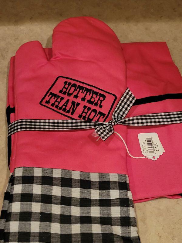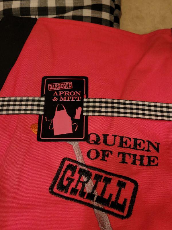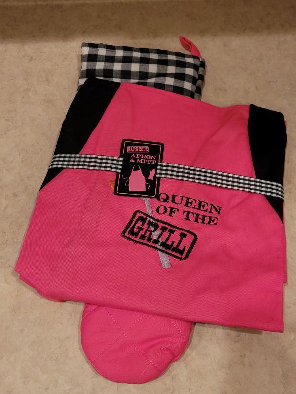 Lot 2: New Queen of the Grill Apron & Mitt (Pink. Back & White)