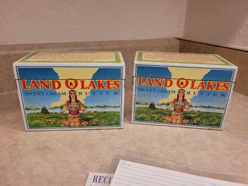 Lot 2: Vintage Land O' Lakes Metal Recipe Boxes (2)