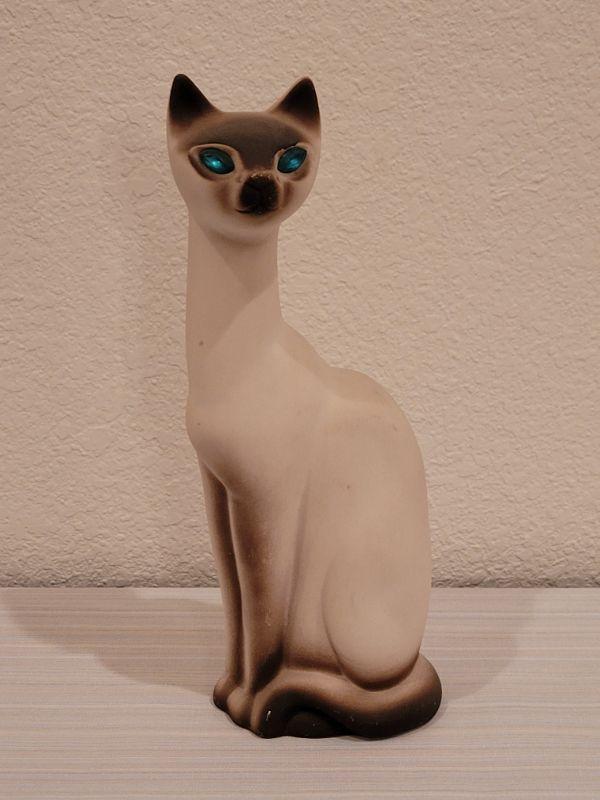 Lot 2: Vintage Mid Century Modern California Pottery Siamese Cat with Emerald Jeweled Eyes