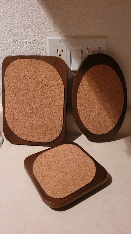 Lot 2: Vintage Cork Top Wood Platters x 3