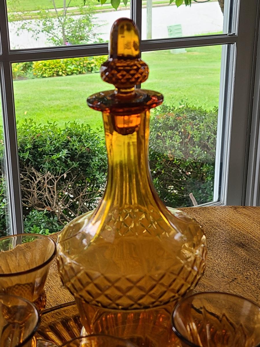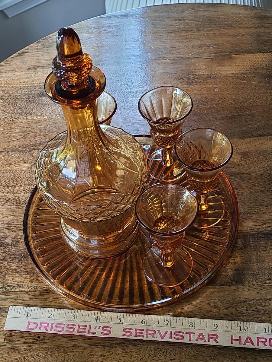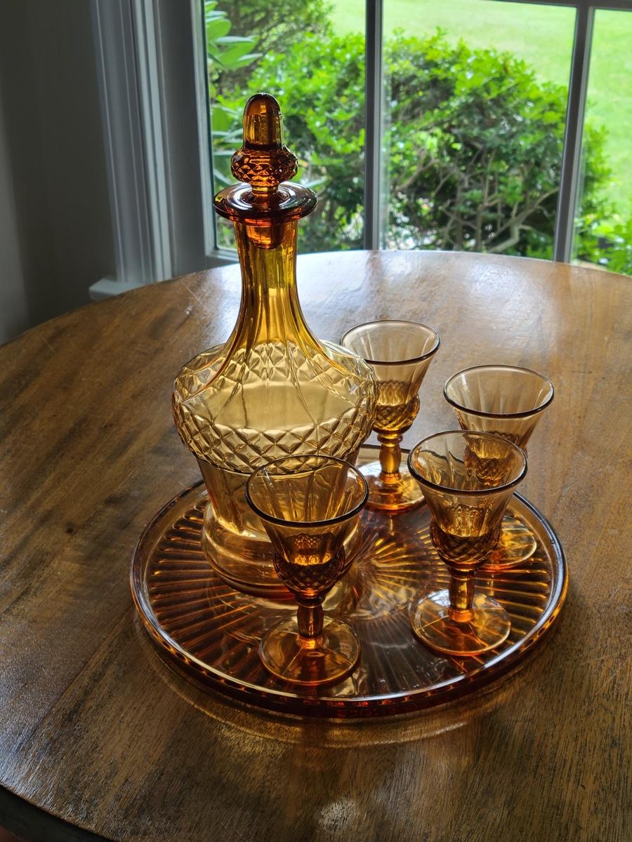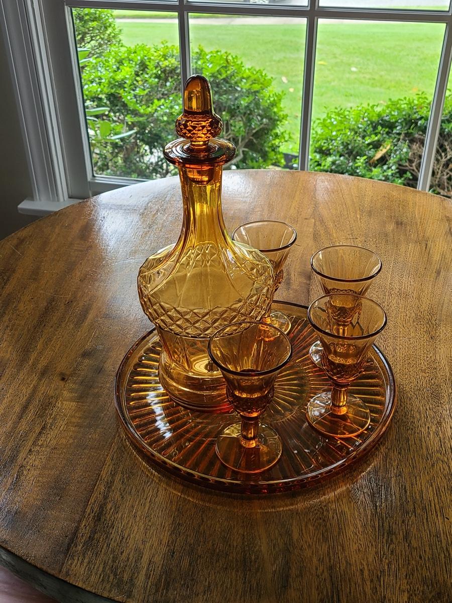 Lot 279: Vintage Amber MCM Cocktail Tray/Decanter
