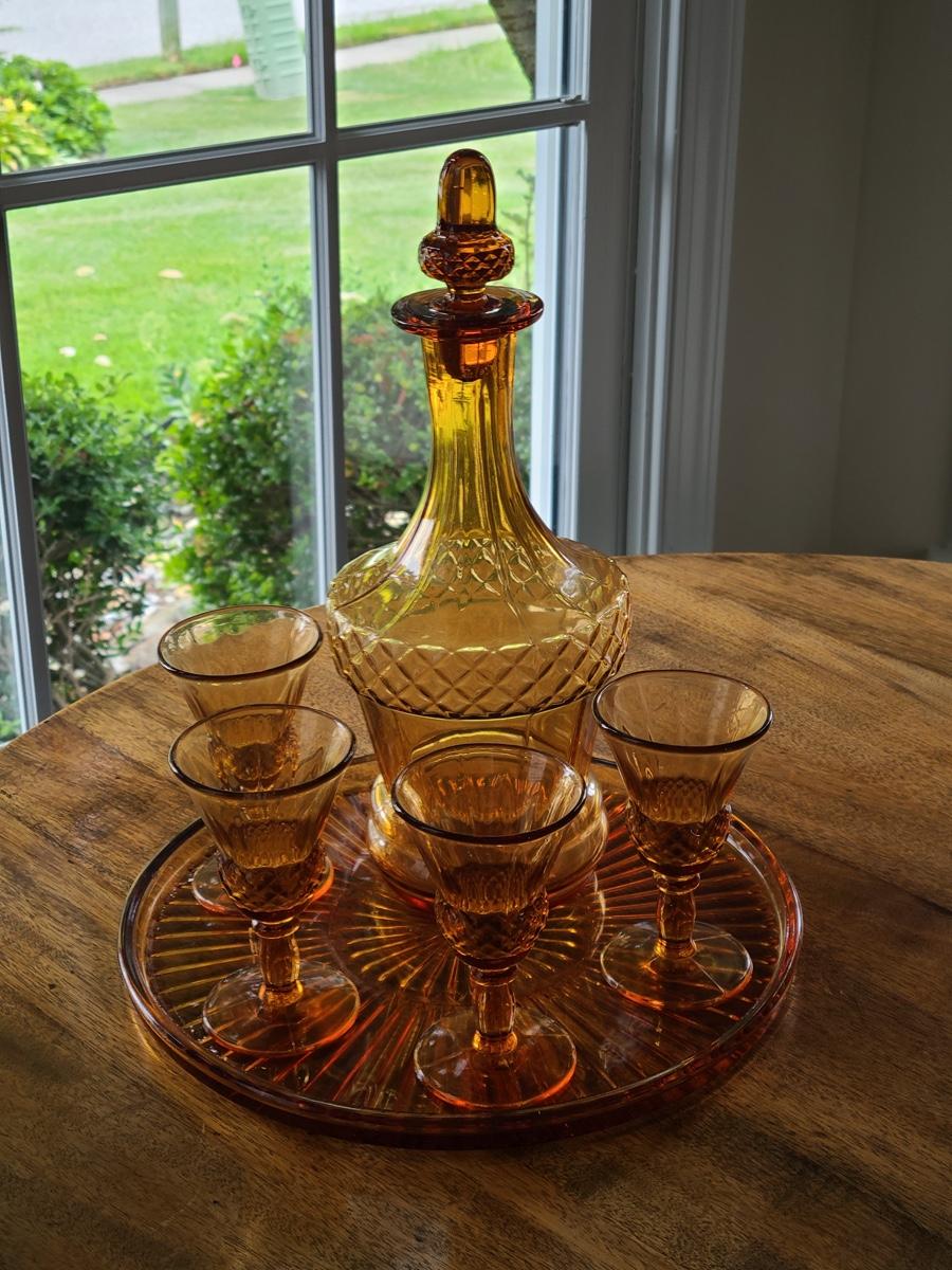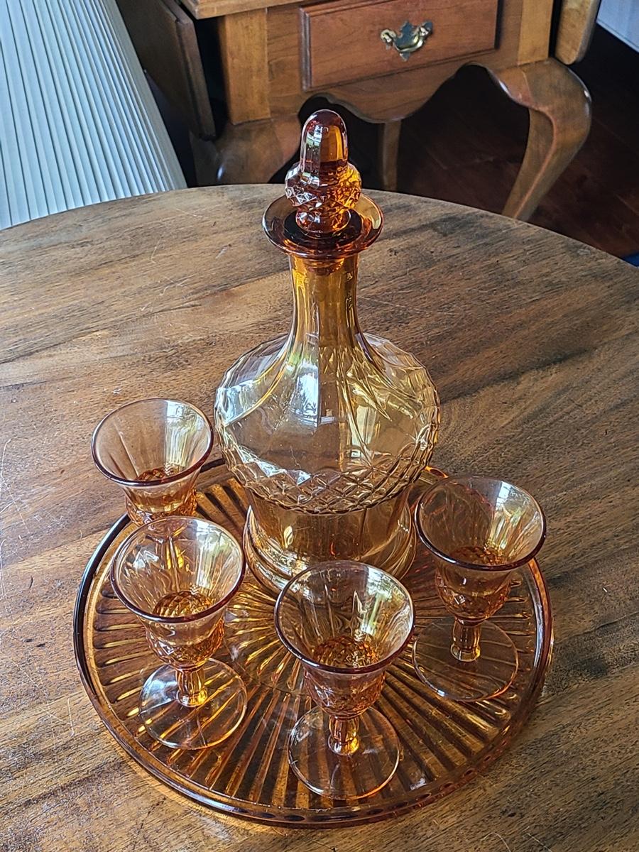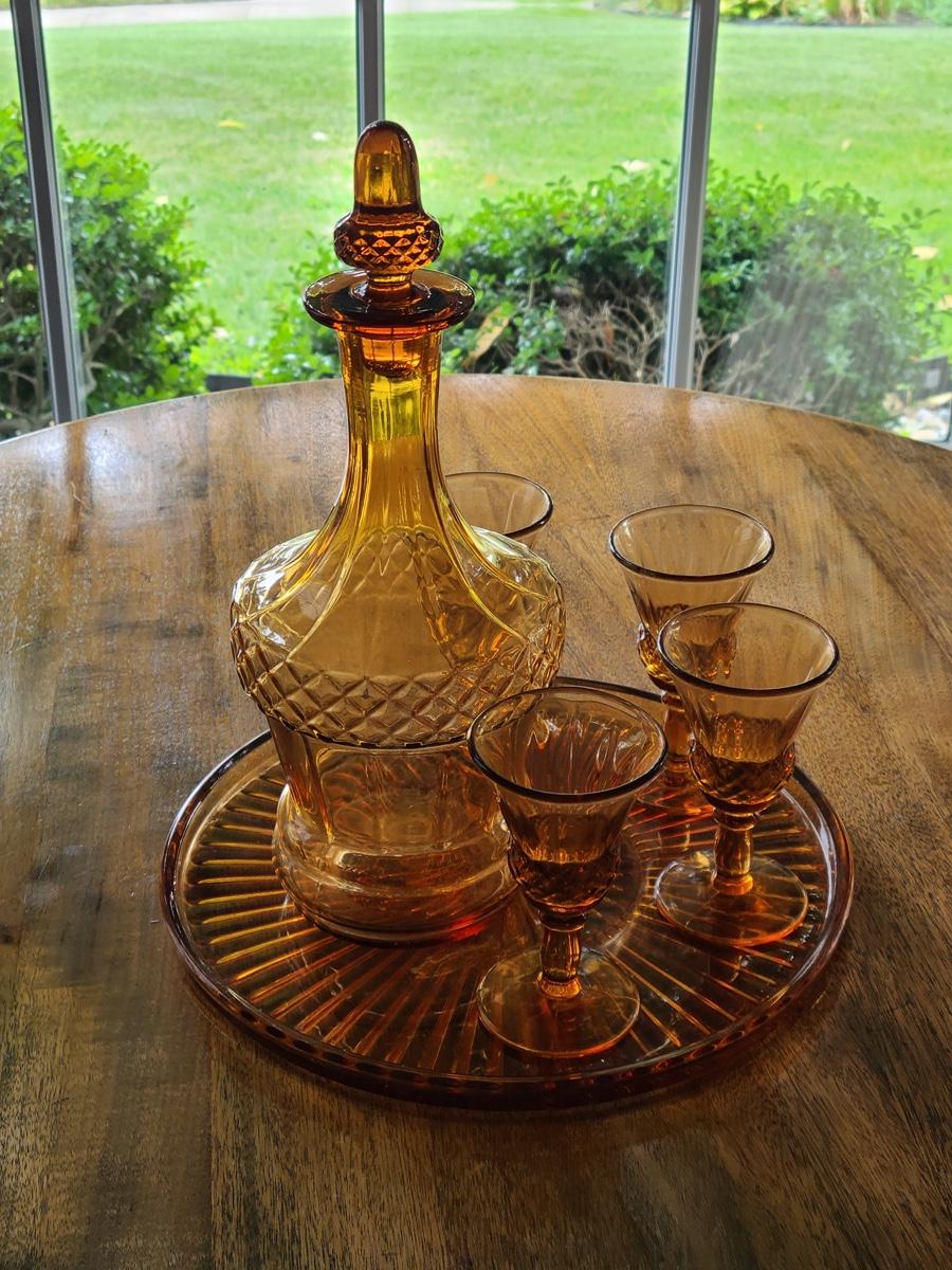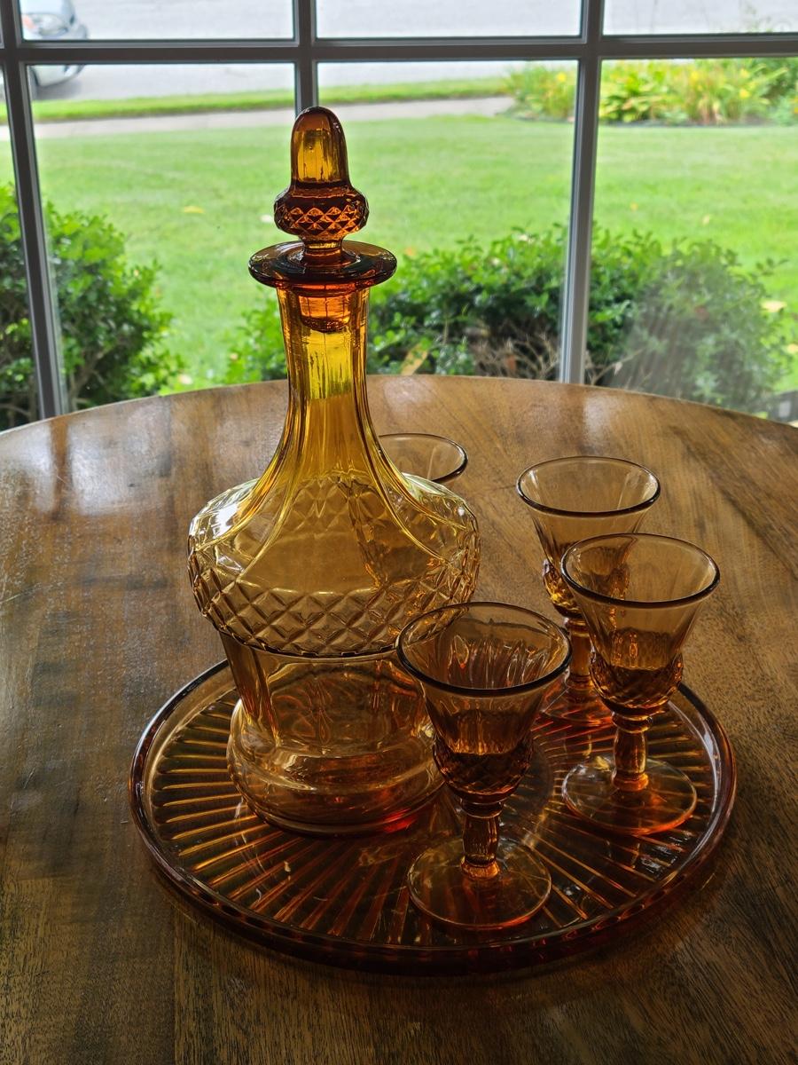 Lot 279: Vintage Amber MCM Cocktail Tray/Decanter