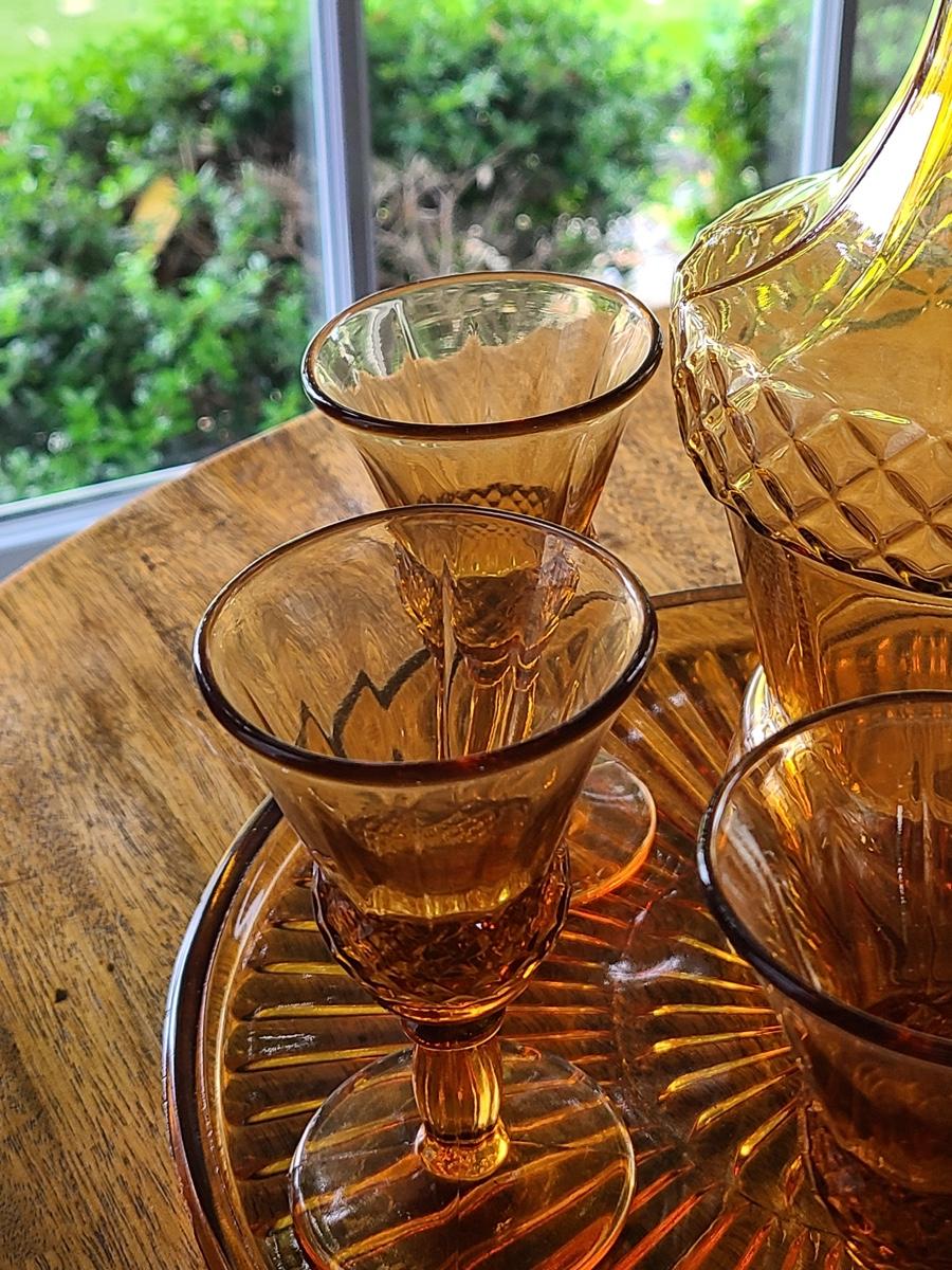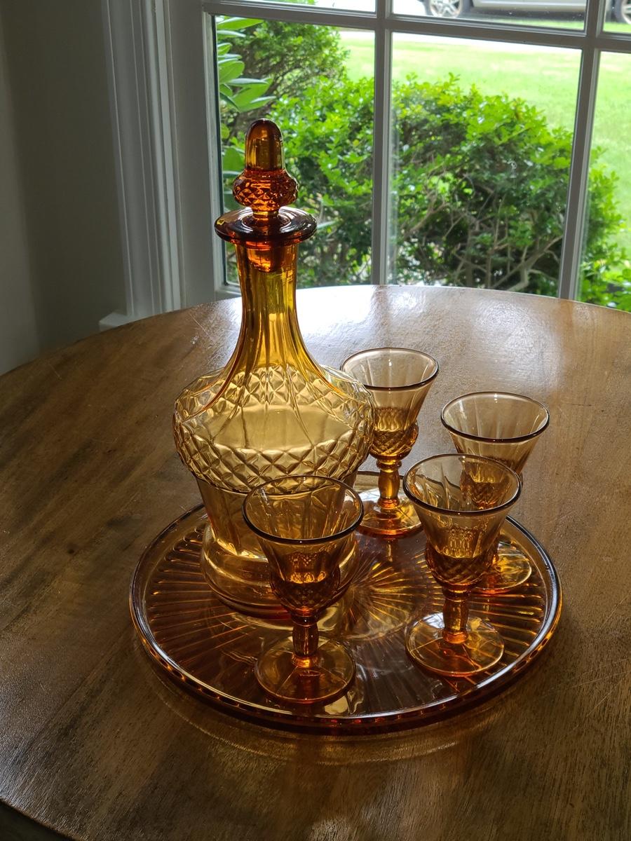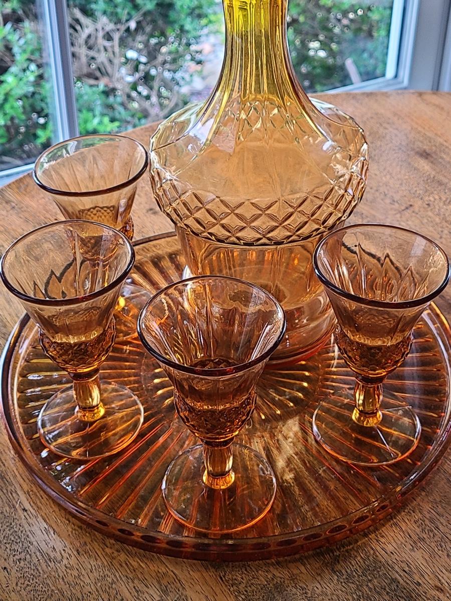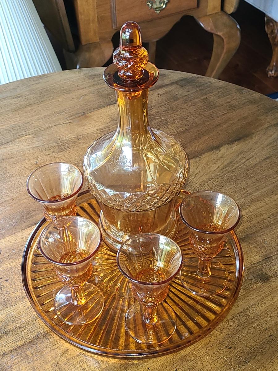 Lot 279: Vintage Amber MCM Cocktail Tray/Decanter