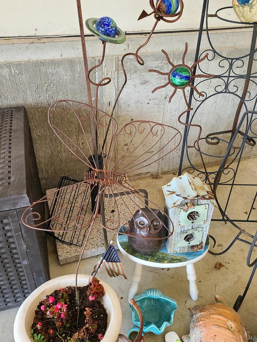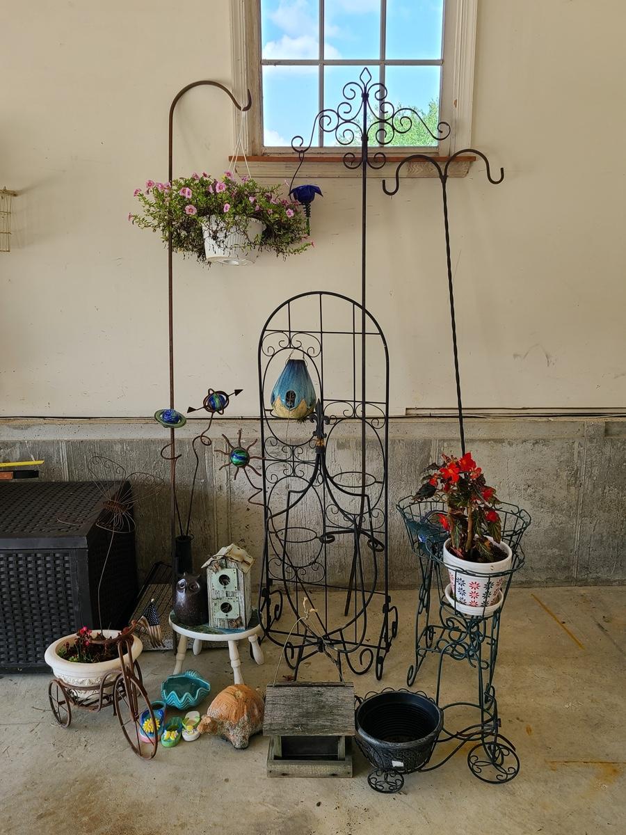Lot 2 Garage: Yard Art, Shephard Hooks, and More