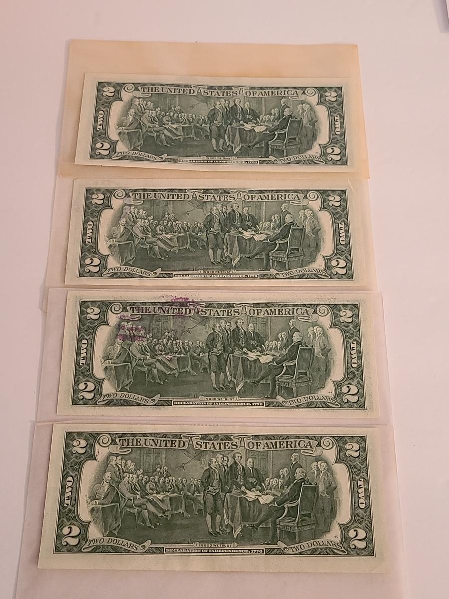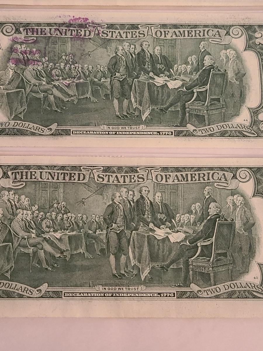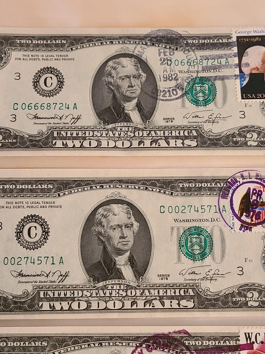 Vintage two dollar bills stamped, and some sealed. We can't guaranteed whether uncirculated or not, so please see condition in pictures. The pictures show condition, measurements if taken, and what is included in the lot. Due to the large amount that we photograph and the time frame, we are not always able to take measurements. All items unless noted, are pre-owned and have been used. If you purchased furniture, you must bring help. We do not allow one person to carry large furniture out on their own. Bring help, tools and a truck for the safety of our client’s homes, and your personal safety. Company policy. Thank you.