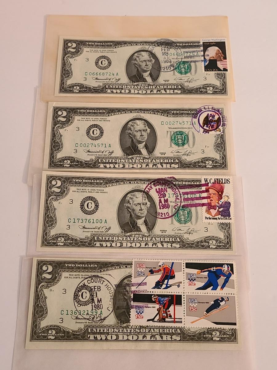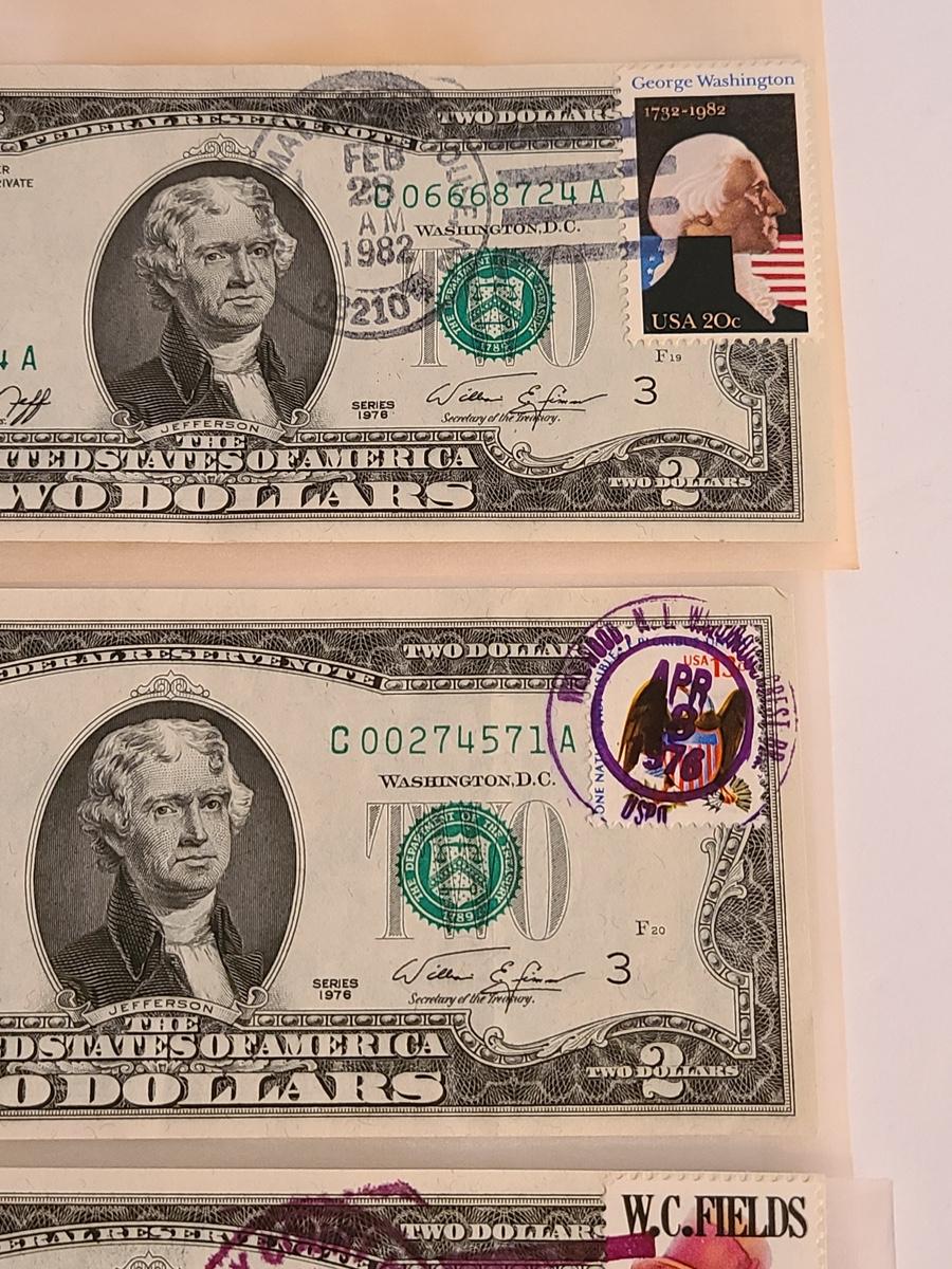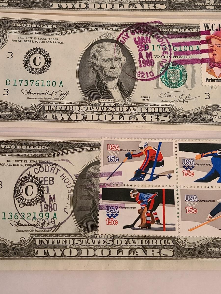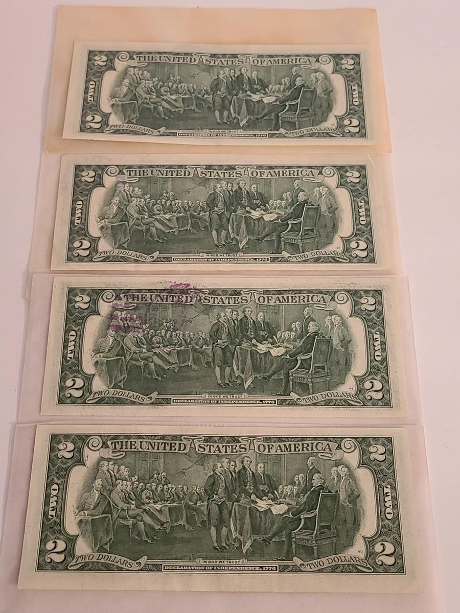 Vintage two dollar bills stamped, and some sealed. We can't guaranteed whether uncirculated or not, so please see condition in pictures. The pictures show condition, measurements if taken, and what is included in the lot. Due to the large amount that we photograph and the time frame, we are not always able to take measurements. All items unless noted, are pre-owned and have been used. If you purchased furniture, you must bring help. We do not allow one person to carry large furniture out on their own. Bring help, tools and a truck for the safety of our client’s homes, and your personal safety. Company policy. Thank you.