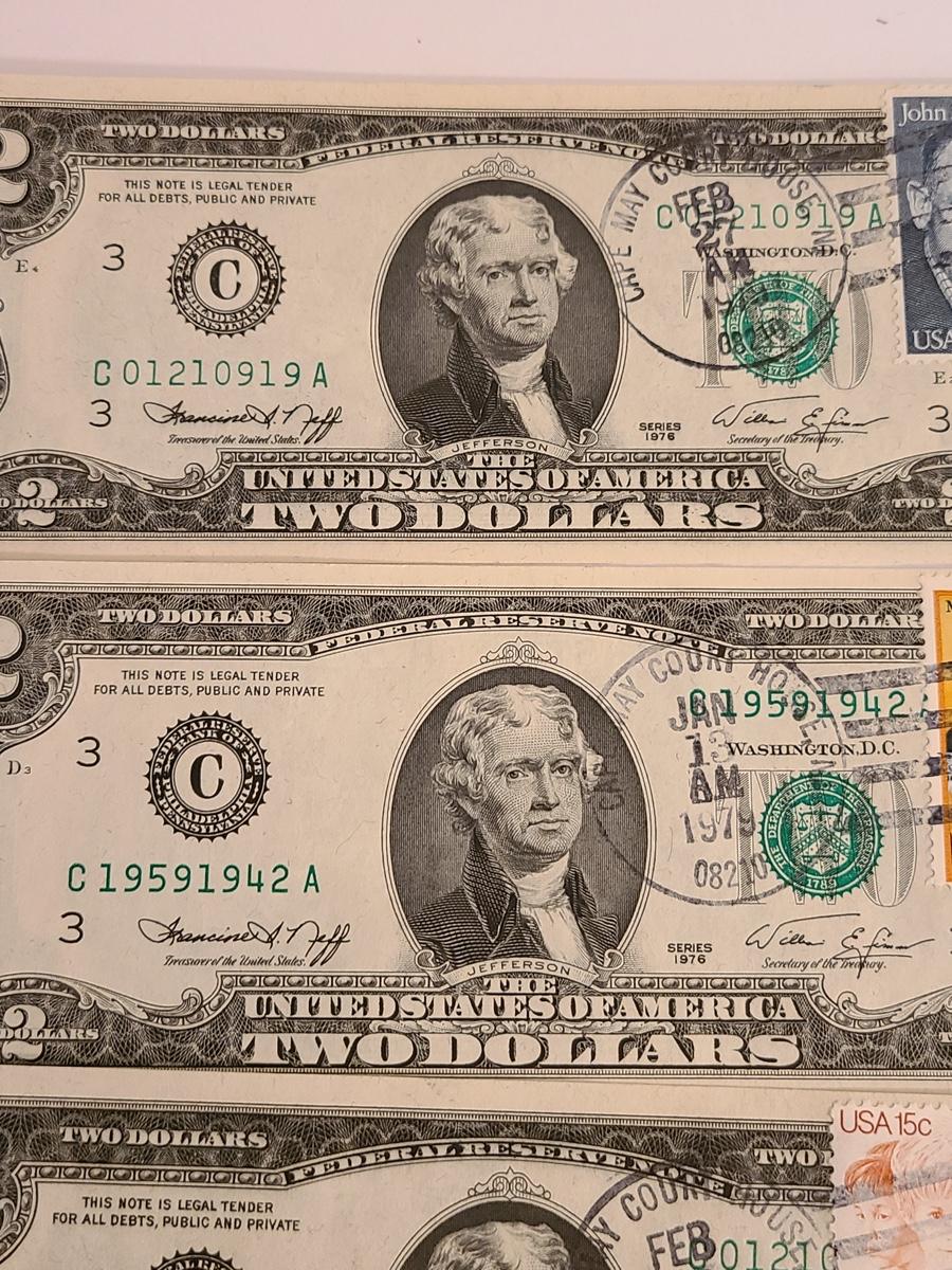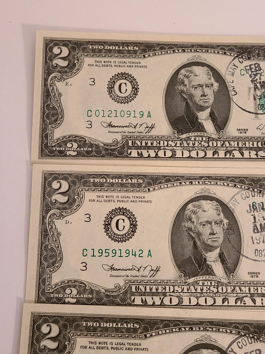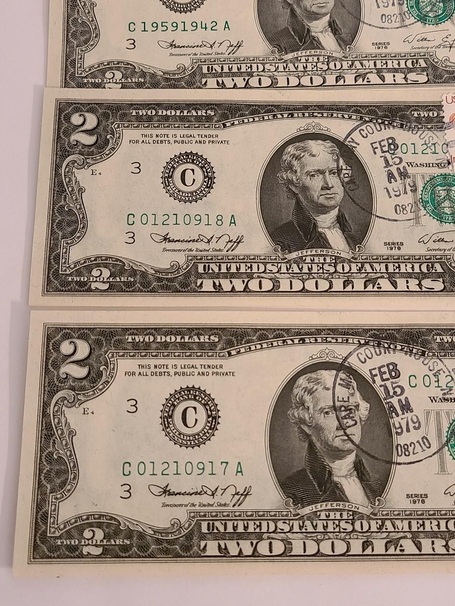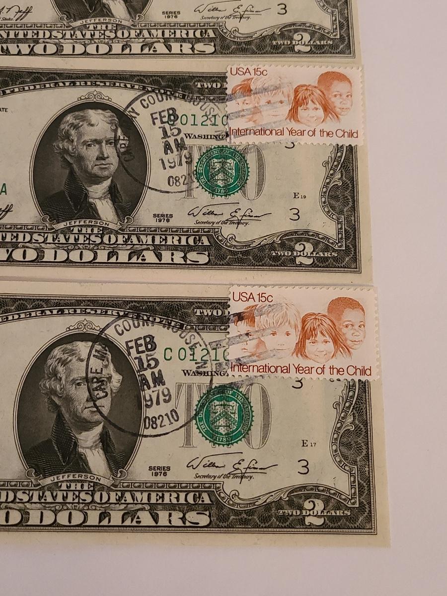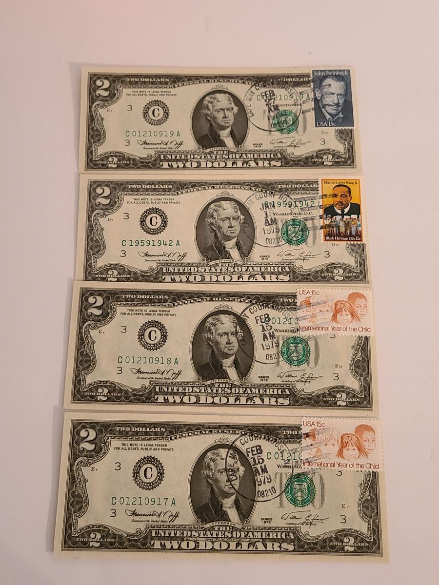 Lot 245: Four $2.00 Bills Stamped First Day of Issue