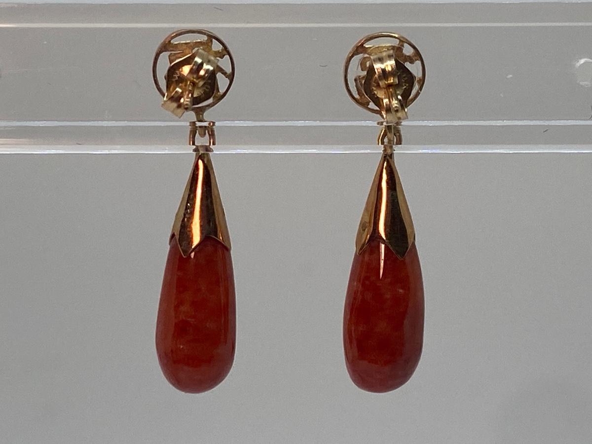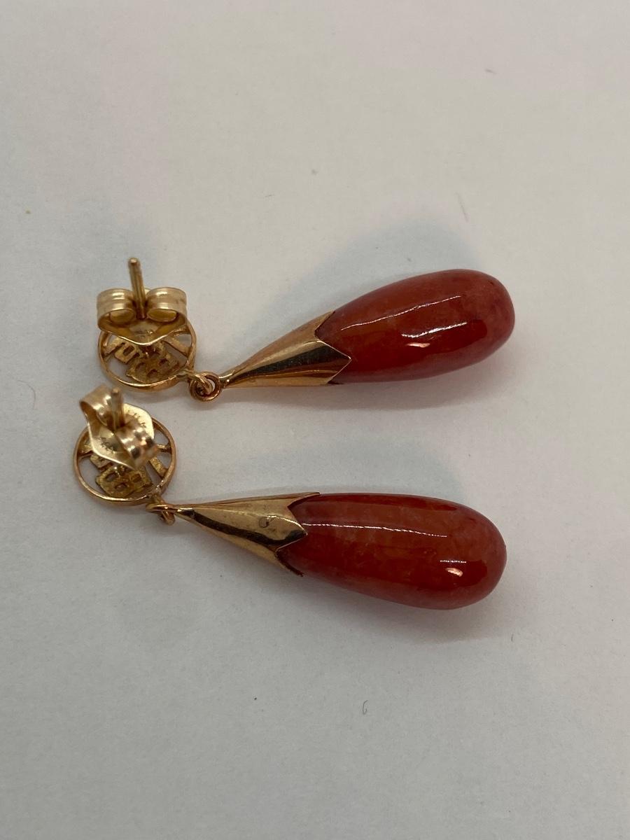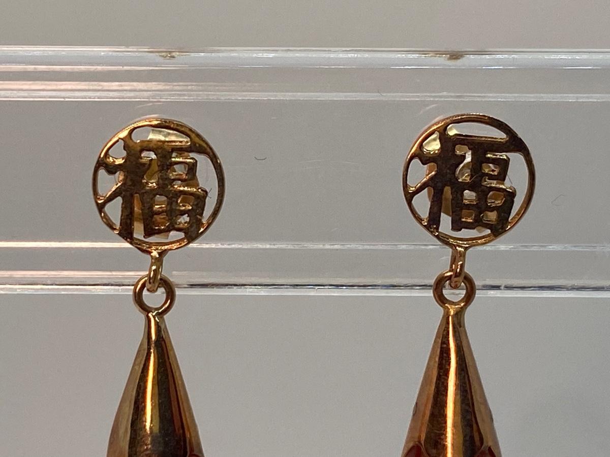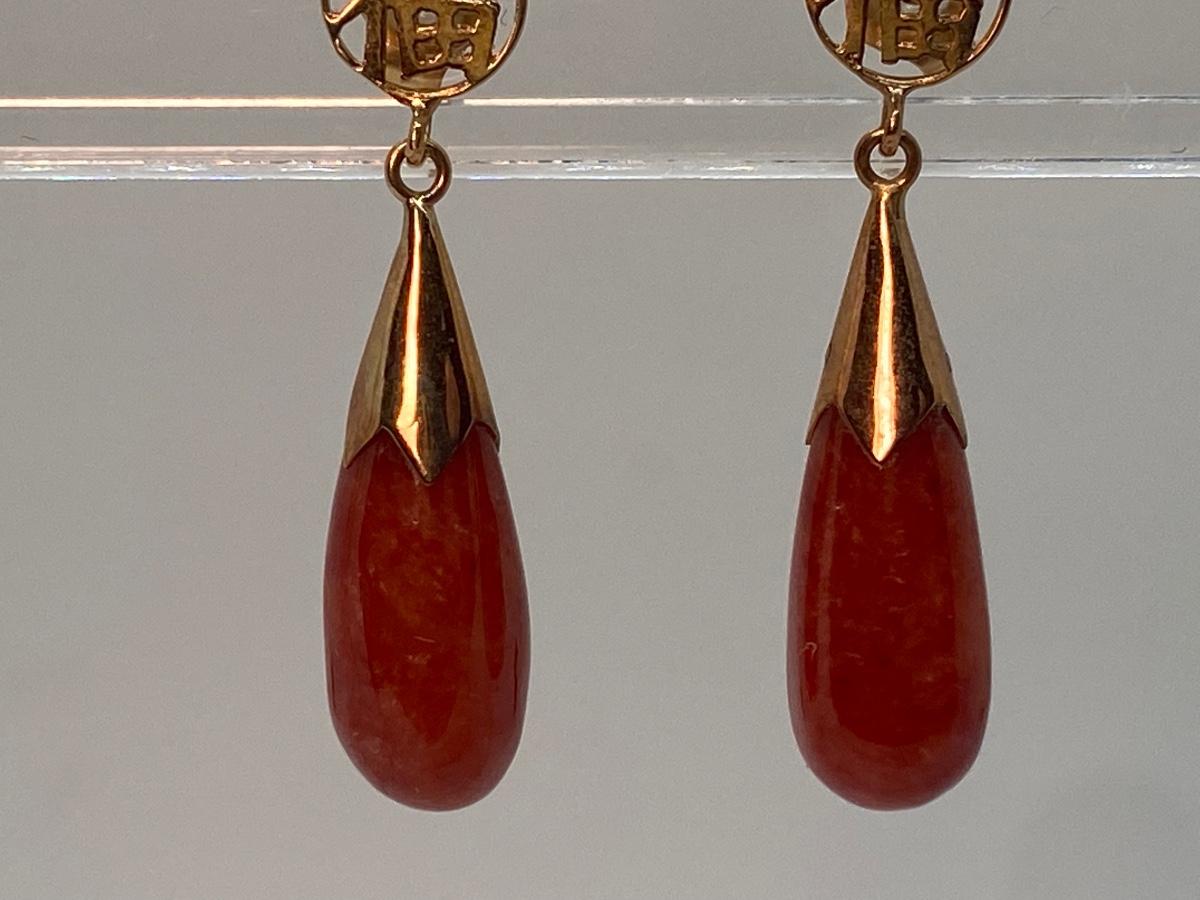 Lot 2: 14k WW Orange Jade Good Fortune Teardrop Dangle Pierced Earrings