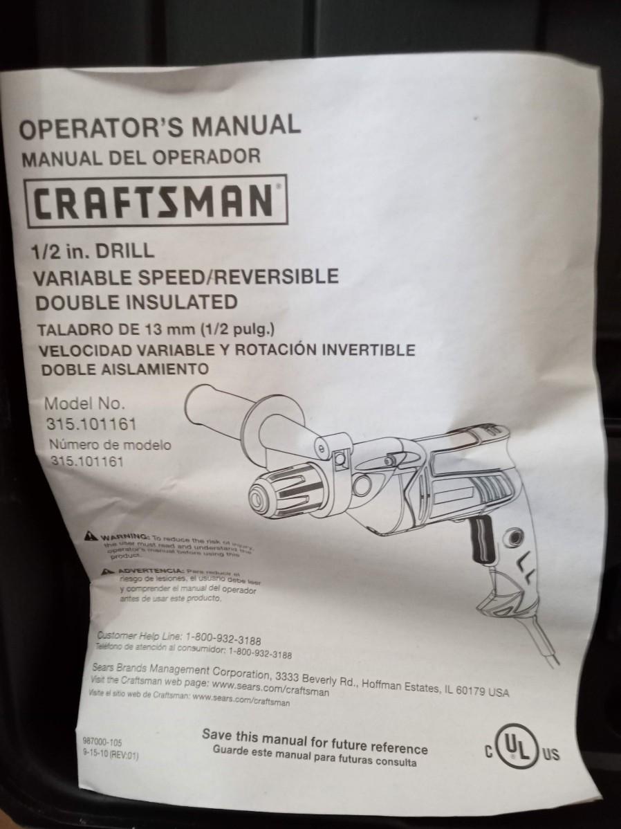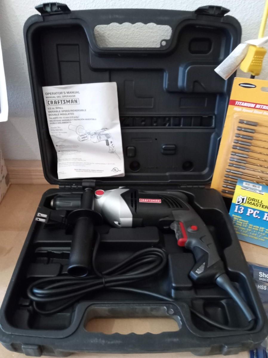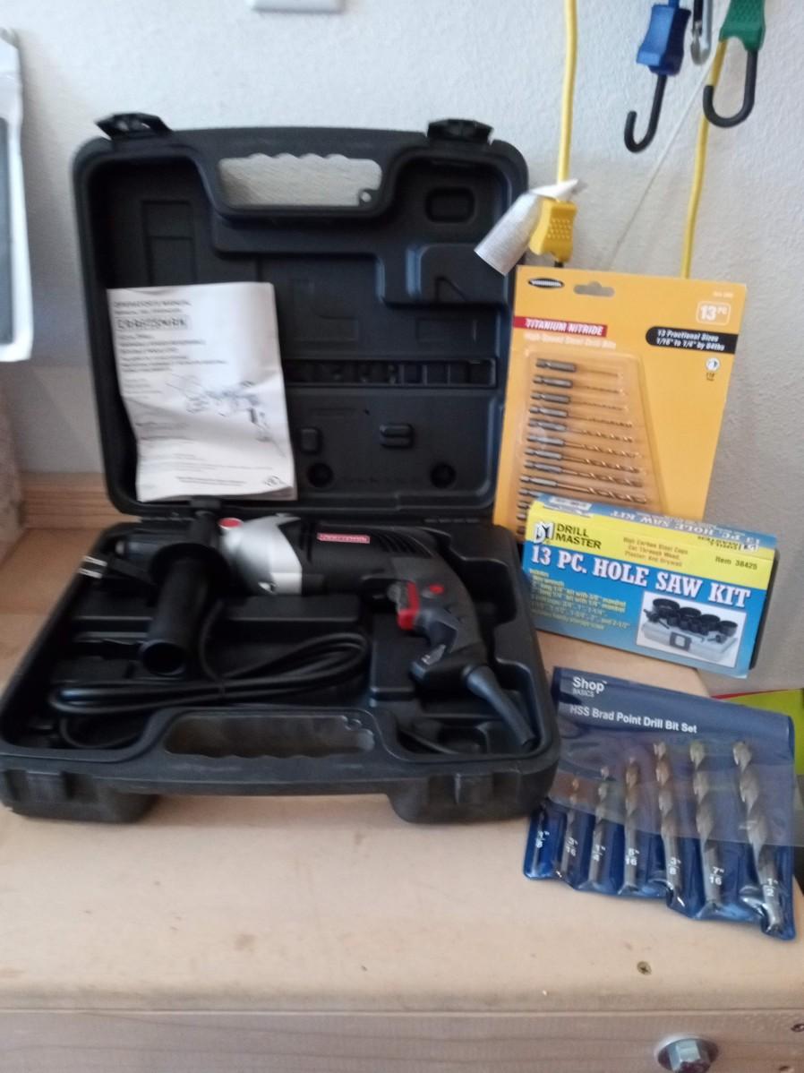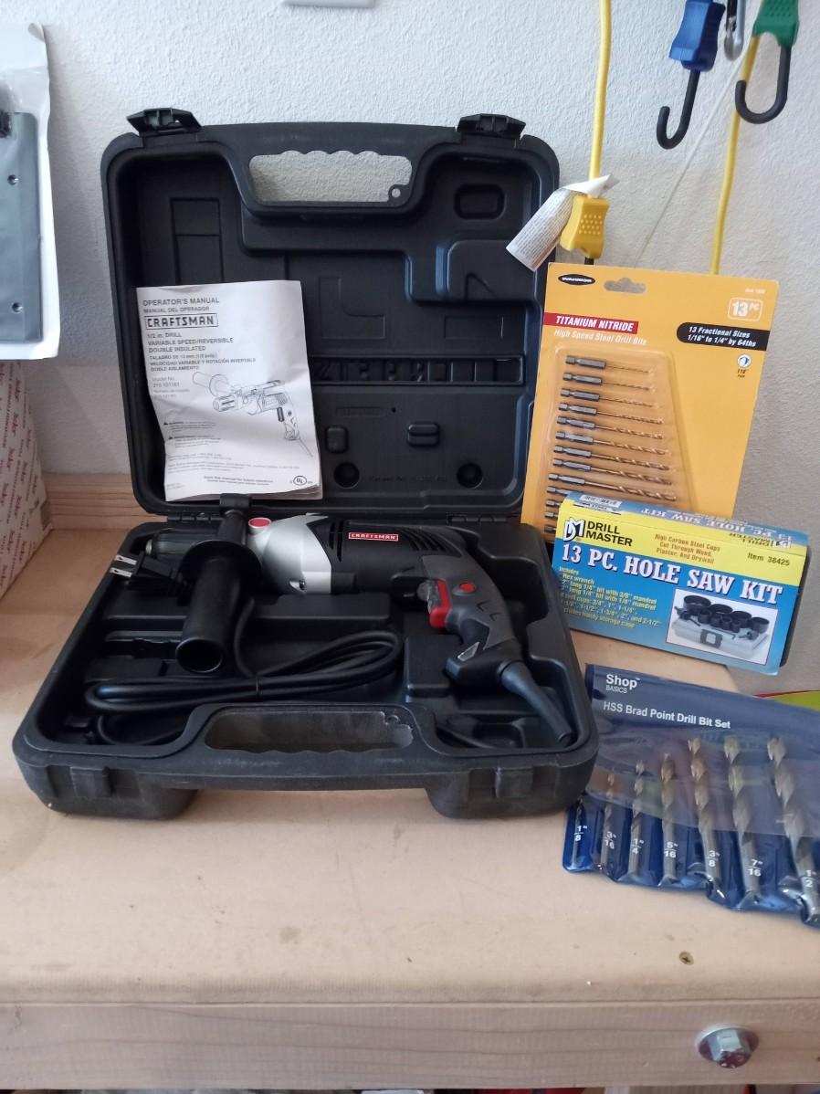 CRAFTSMAN 1/2' DRILL, DRILL BITS & HOLE SAW KIT