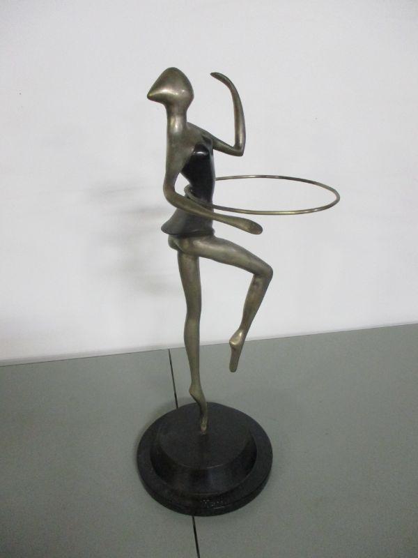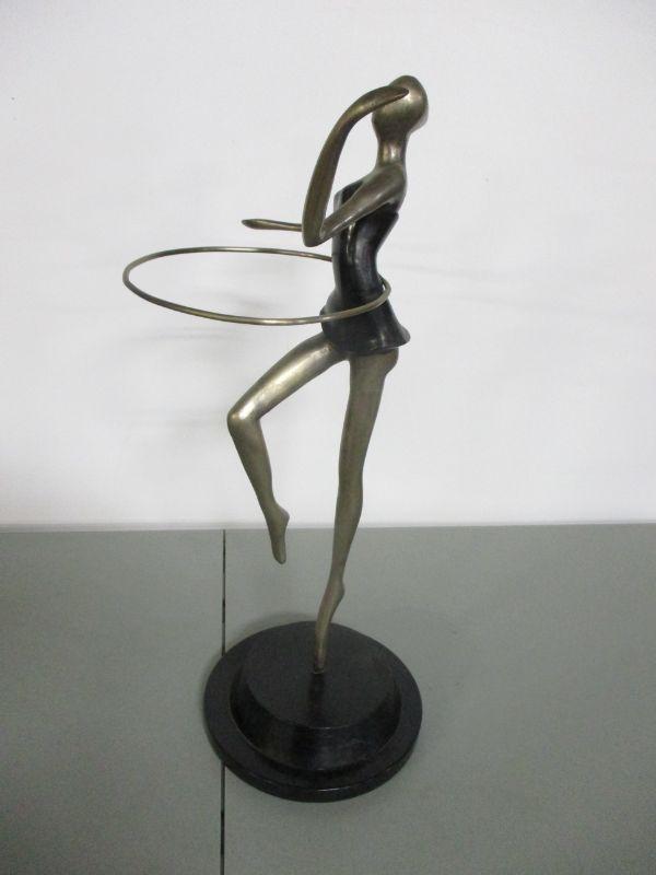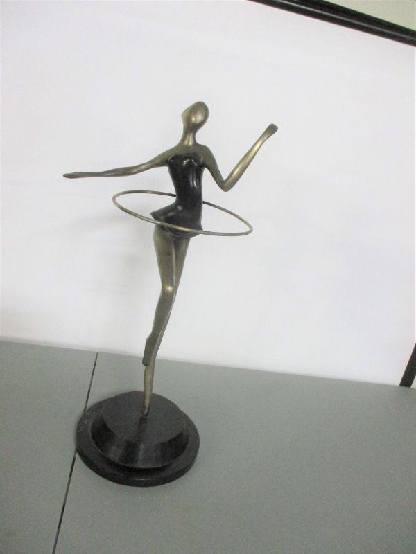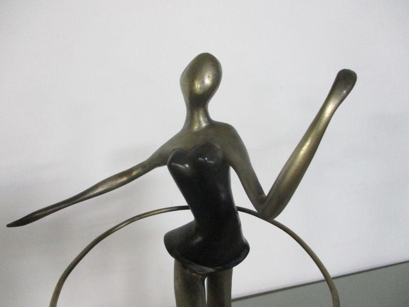 Lot 2 - Abstract Bronze Art Dancer Figurine Hula Hoop On Stand