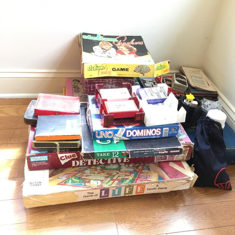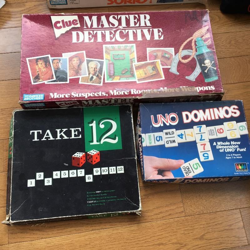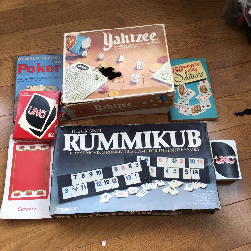 Board games. Lot includes a variety of games including Clue, Trivial Pursuit, Rummikub, Uno, Take 12, decks of cards and holders, dominos and more. Sit down and enjoy some quality time with your friends and family with this nice collection of games. We cannot confirm all pieces included.