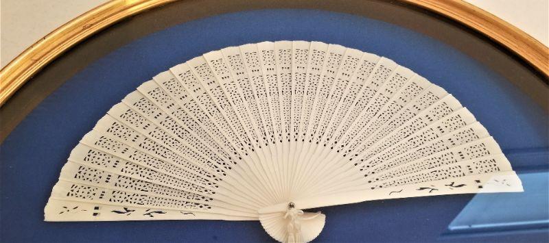 Lot #3 Celluloid/French Ivory fan in Fan Shadow Box