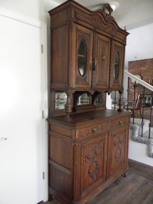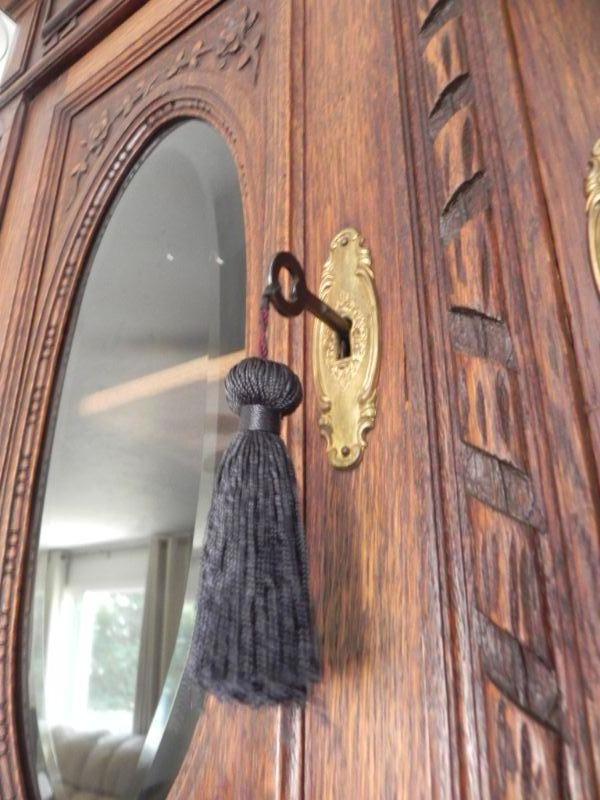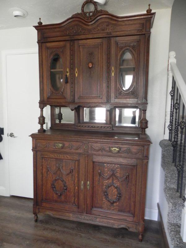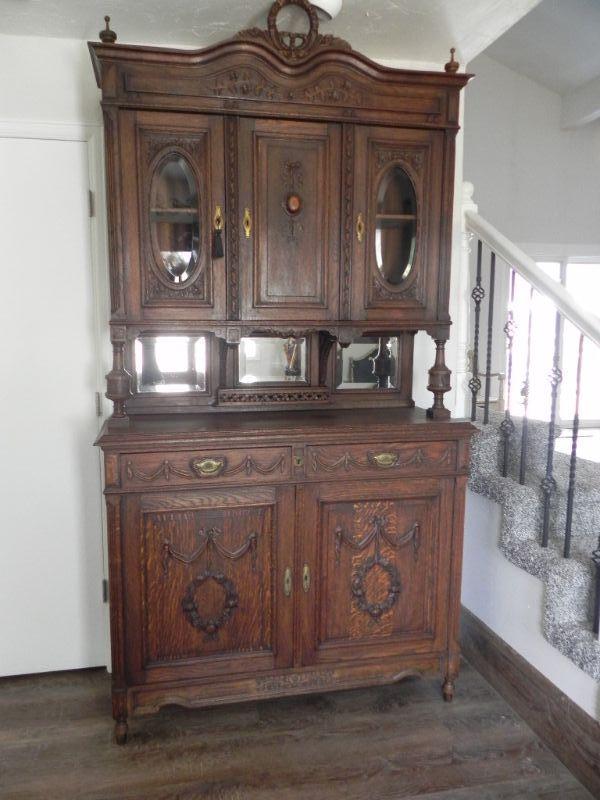 BEAUTIFUL AND IN GREAT CONDITION. YOU MUST USE A SKELETON KEY TO UNLOCK THE DOORS TO AMPLE STORAGE, BEVELED MIRRORS