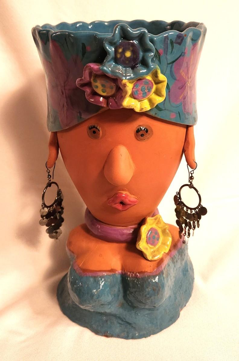 Wonderful art piece - Creole Woman Planter from Twin Light creations - terra cotta, 12" tall, good condition.