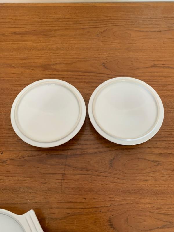 2 covered casserole baking / serving dishes. Excellent condition w/ minimal wear. No cracks, chips or utensil marks. Smallest measures 4’ tall (incl lid) and largest measures 5 1/4” (incl lid). Diameter for both is 8 3/4”, not including handles. Total 4 pcs (2 dishes, 2 lids).