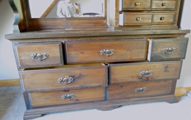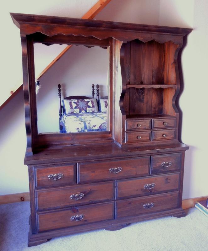 Lot 2: Dark Pine Serpentine Dresser with Mirror