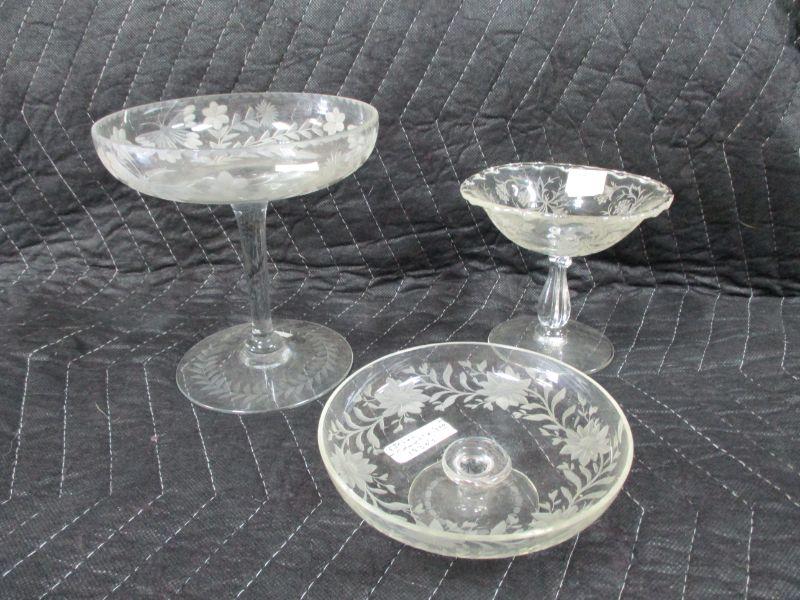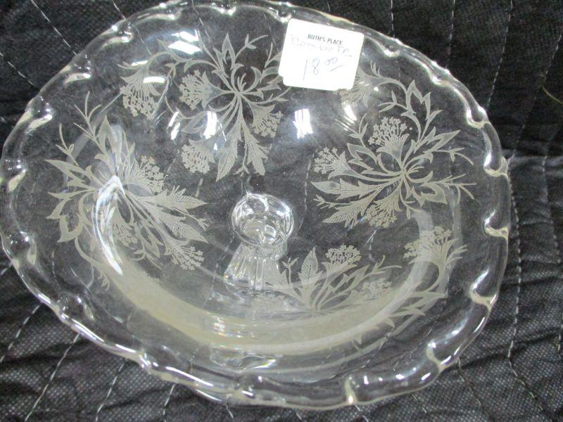 Etched Compote Crystal - Flower Designs - One dish 1930's